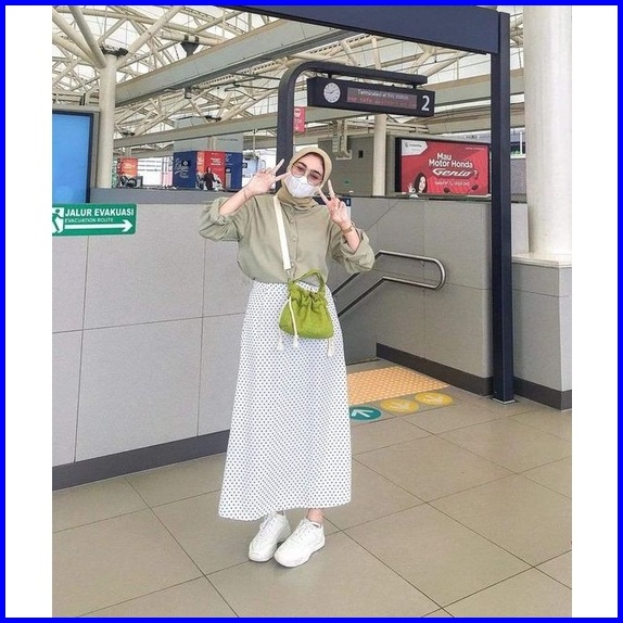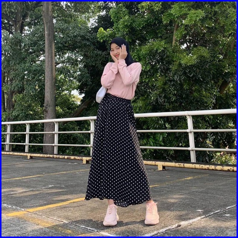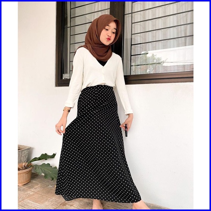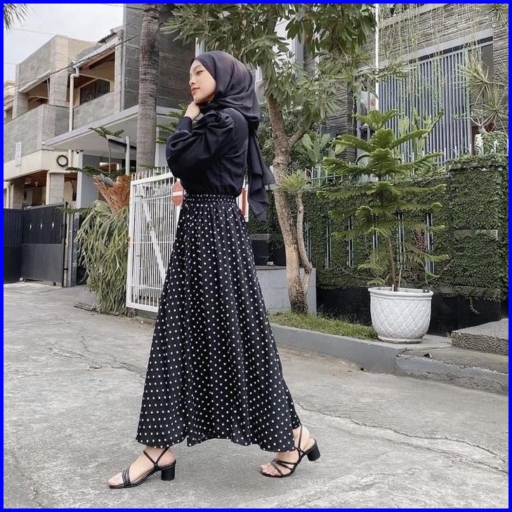 Nelafa Rok Polka Rok Panjang Wanita Motif Polkadot Kecil Rok Maxi