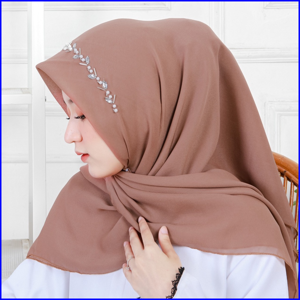 Nelafa Hijab Segiempat Bella Payet Daun Bella Square Daun