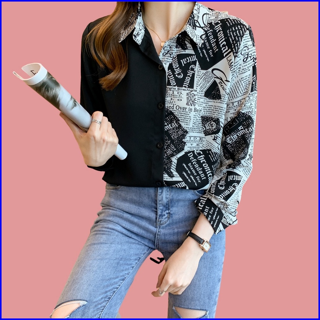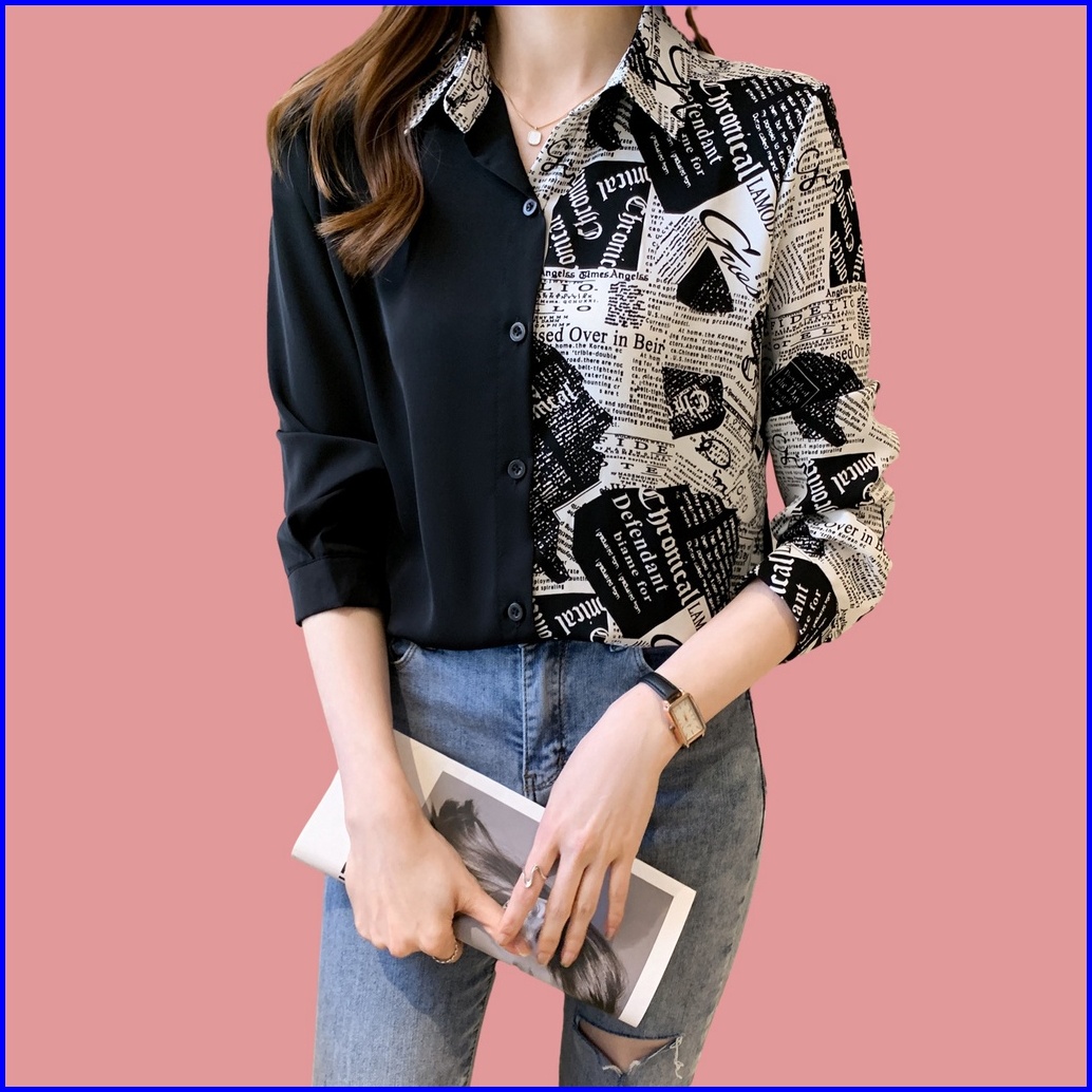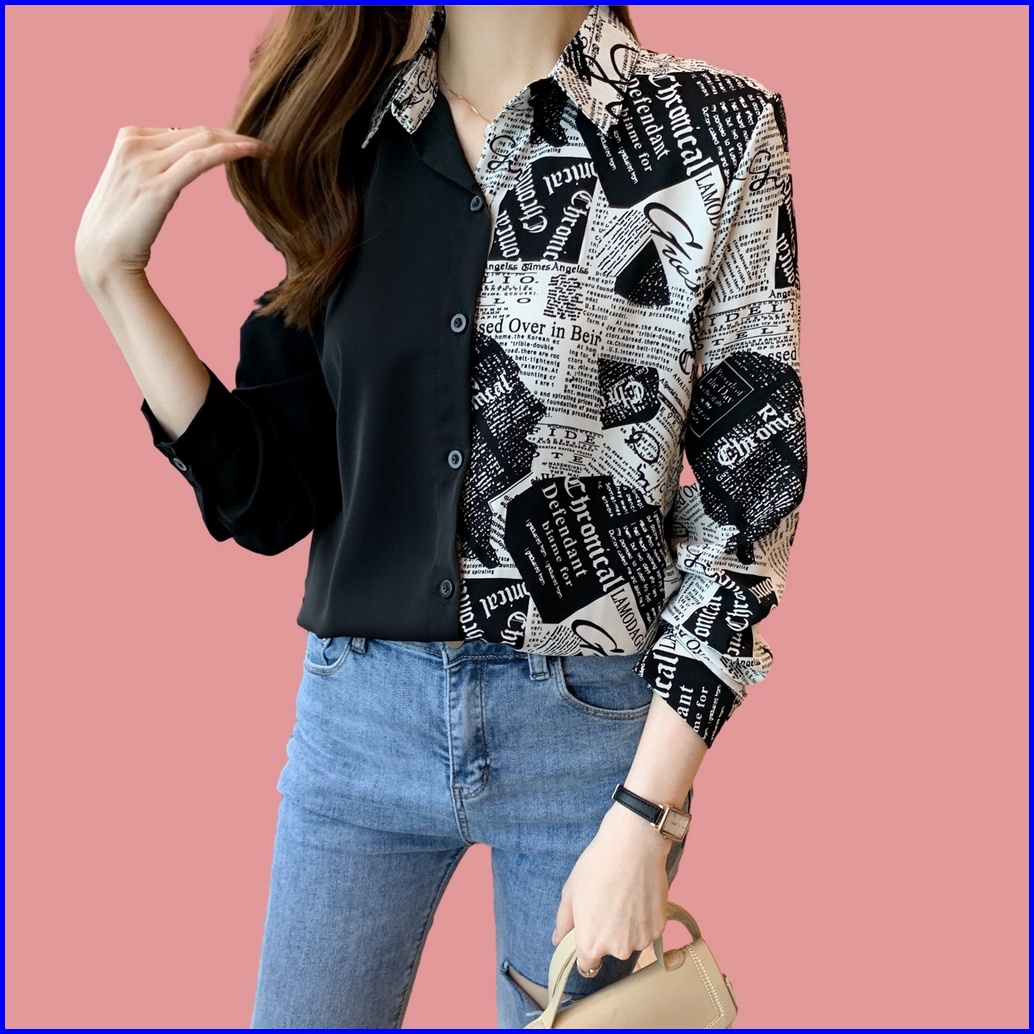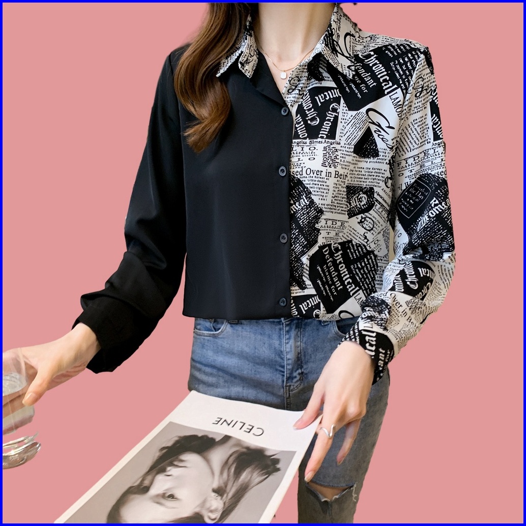 New Fashion Korean Style High Quality Fabric Personalized Color Block Splicing Women S Long Sleeve Casual Black Shirt