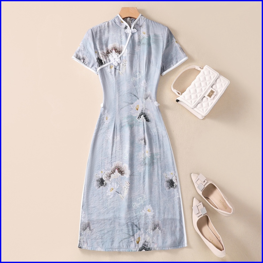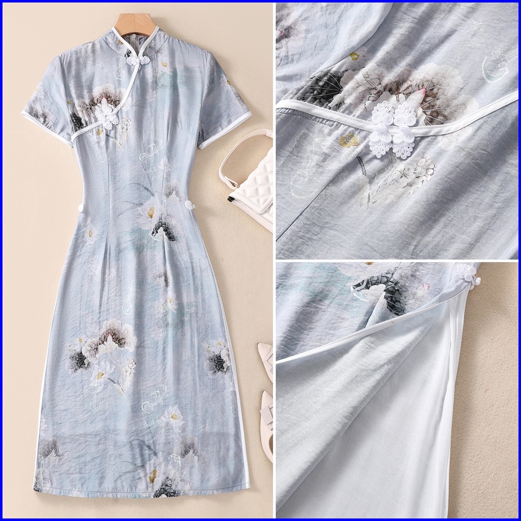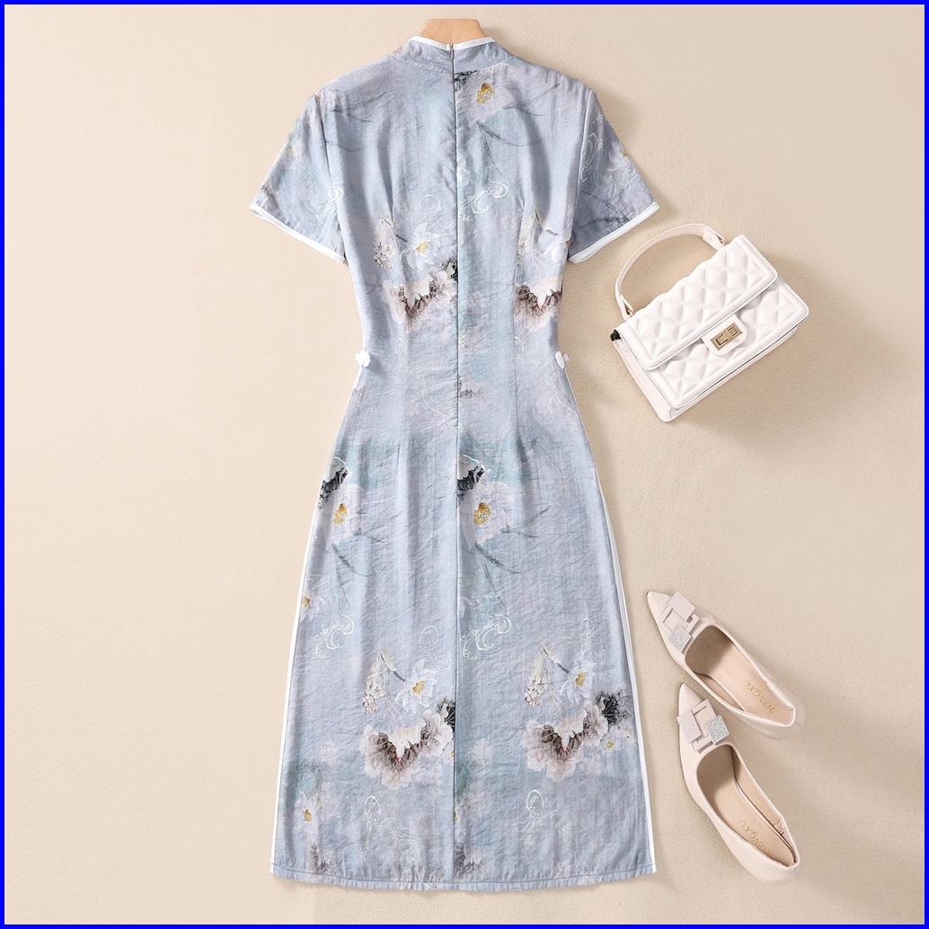 Gray Short Sleeve Modern Dress For Women Summer Qipao A-line Dresses