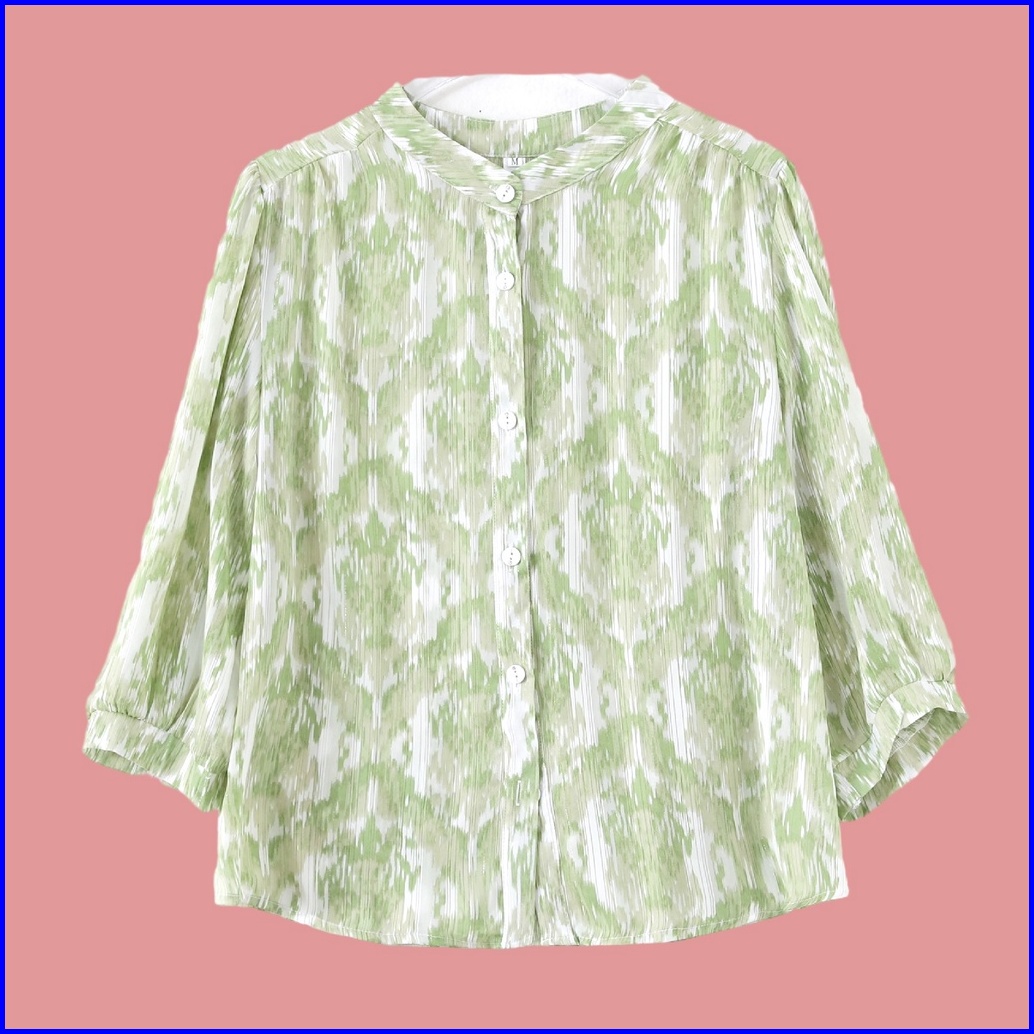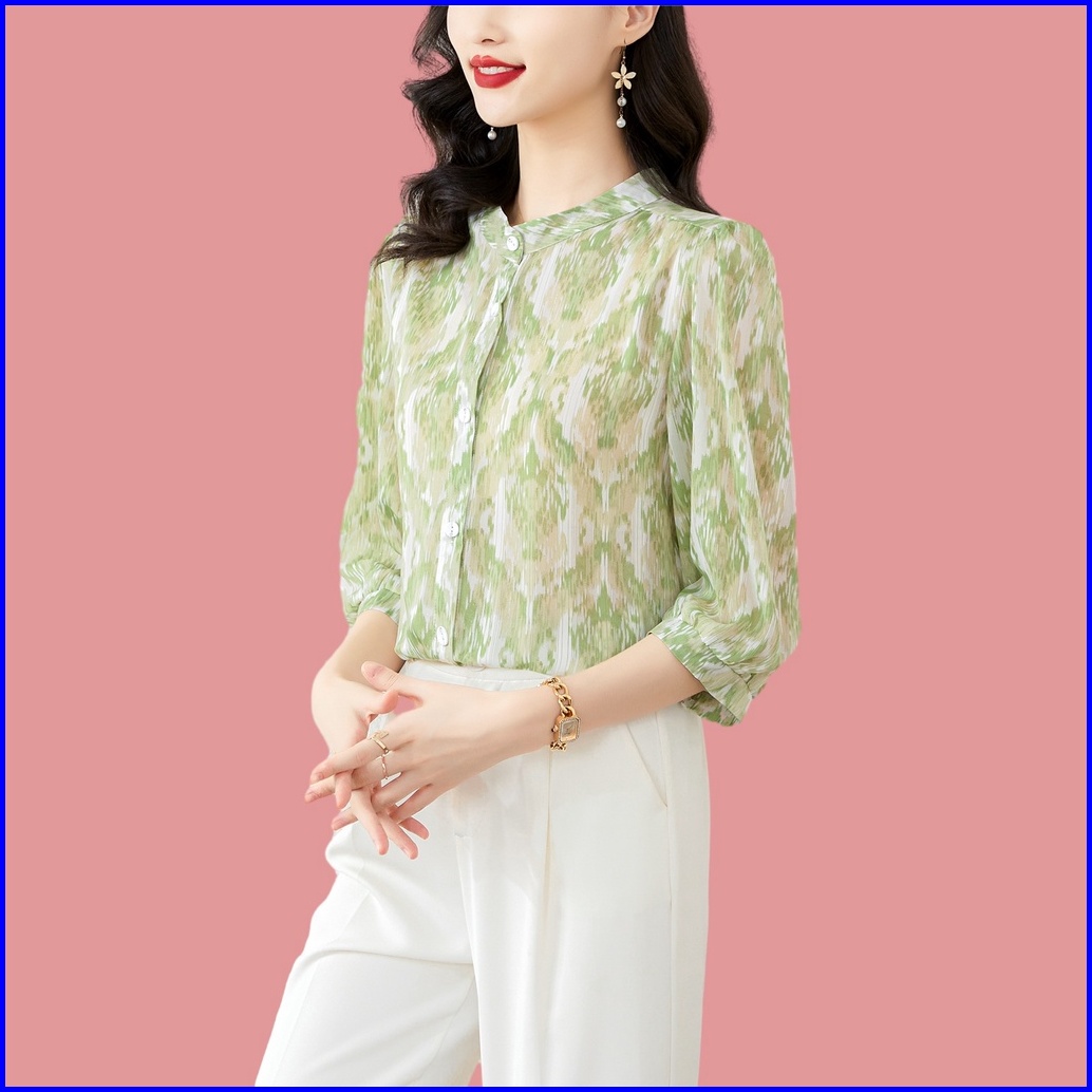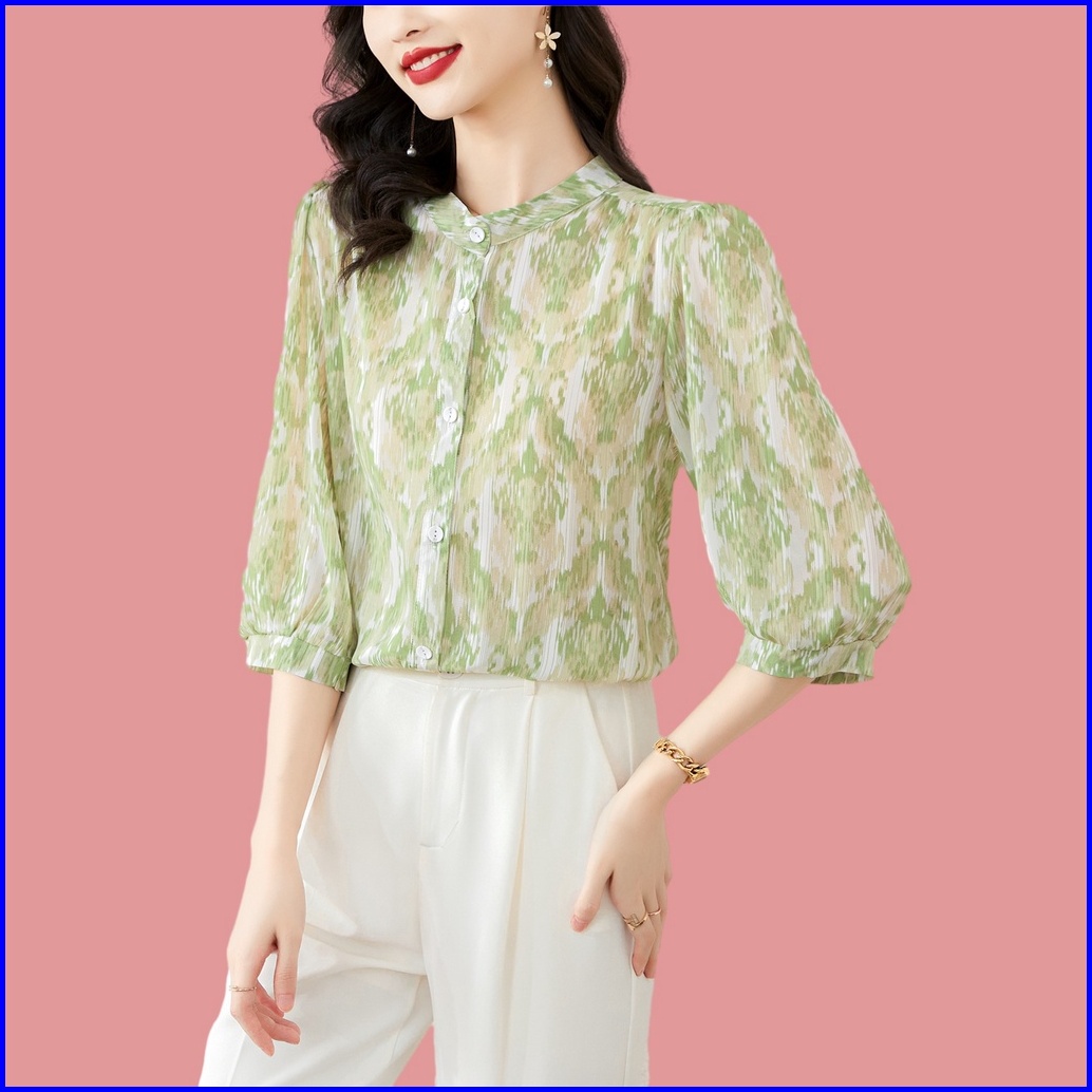 High Quality Fabric New Fashion Korean 3 4 Sleeve Length Green Blouse Work Clause Women Tops