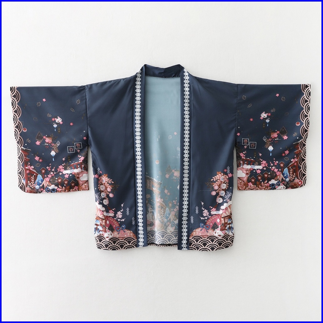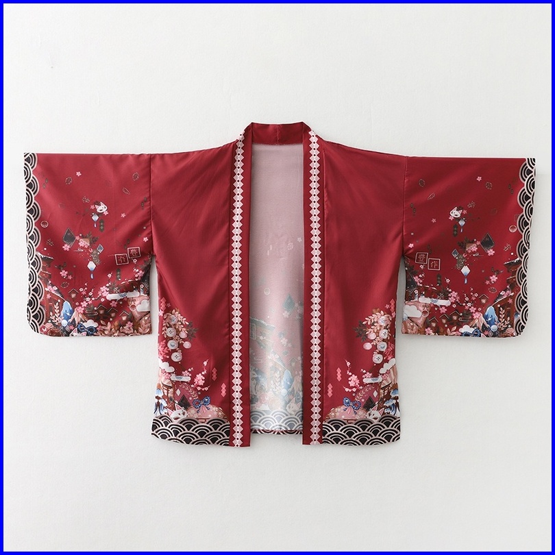 Anime Street Cardigan Jepang Harajuku Kimono Longgar Warna Pria Hitam Hijau Merah Pakaian 2023