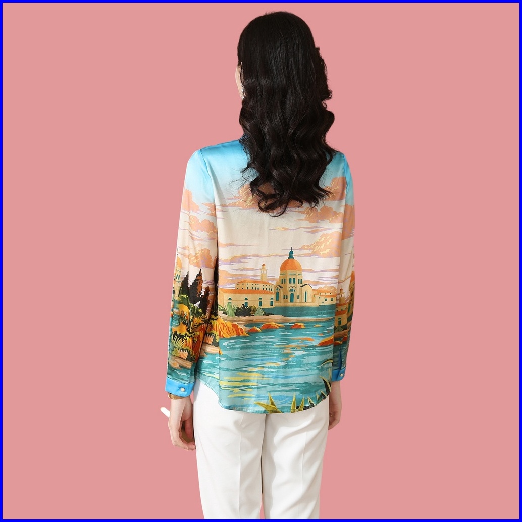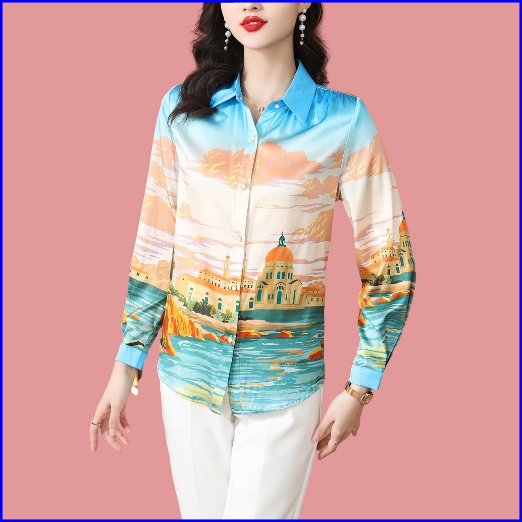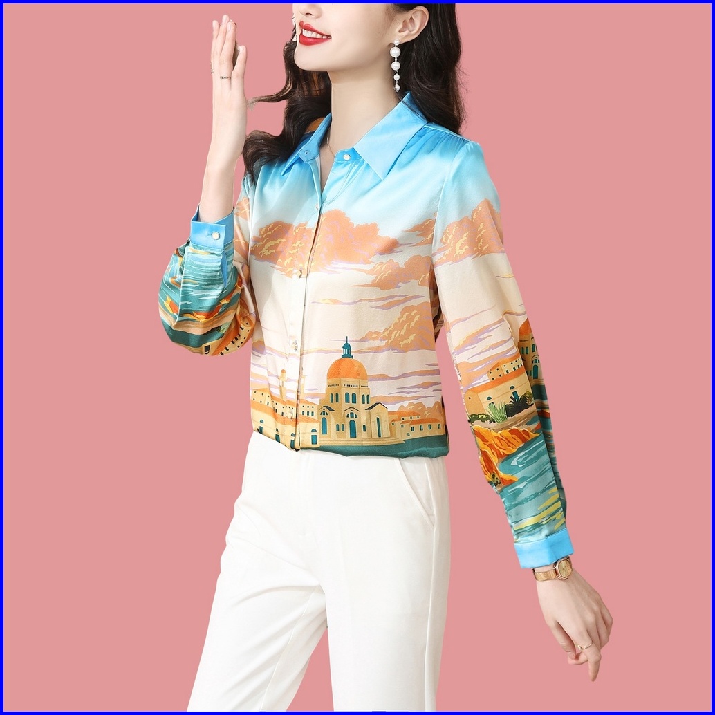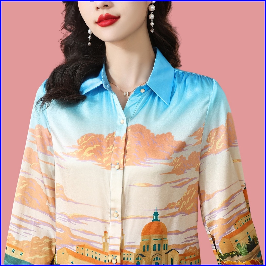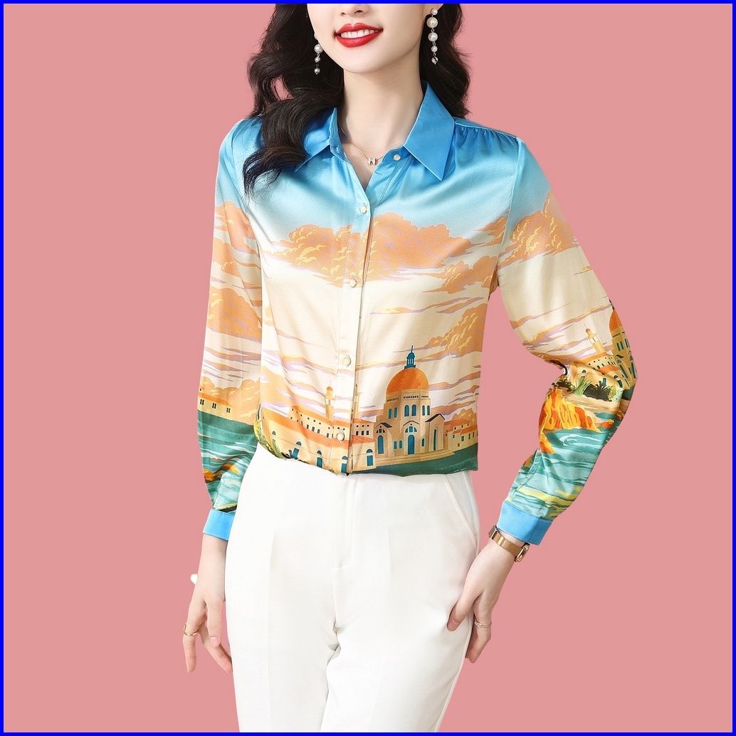 Silk Satin Smooth Soft New Fashion Blue Women S Casual Loose Long Sleeve Shirt Office Party Shirts Tops Kemeja Lengan Pa