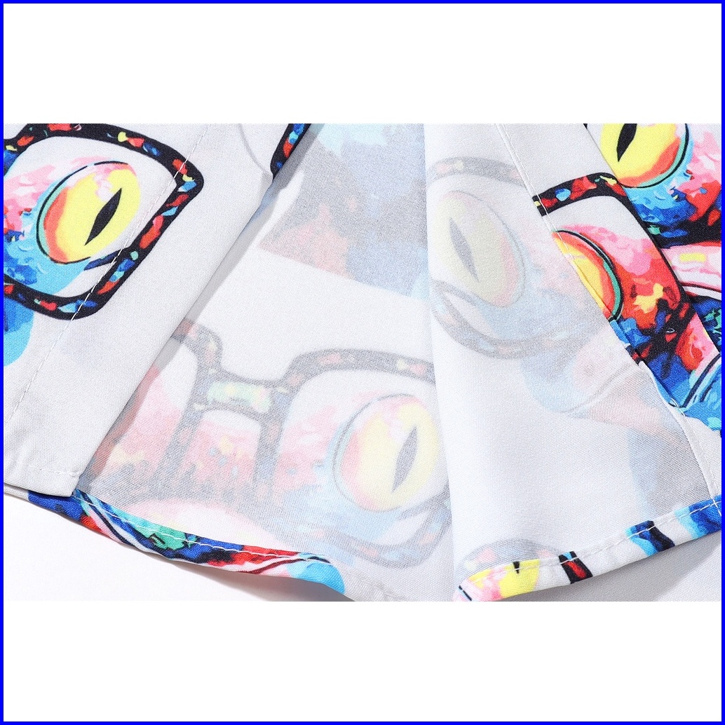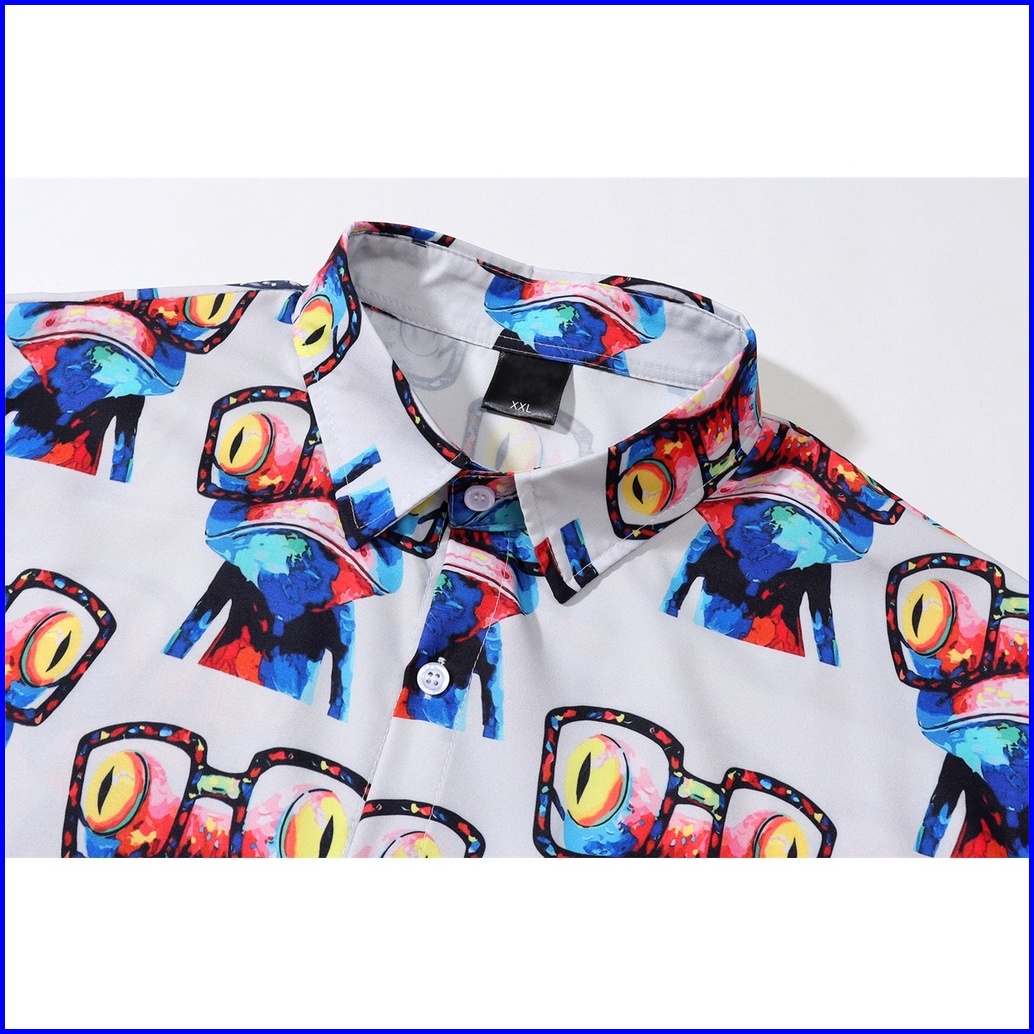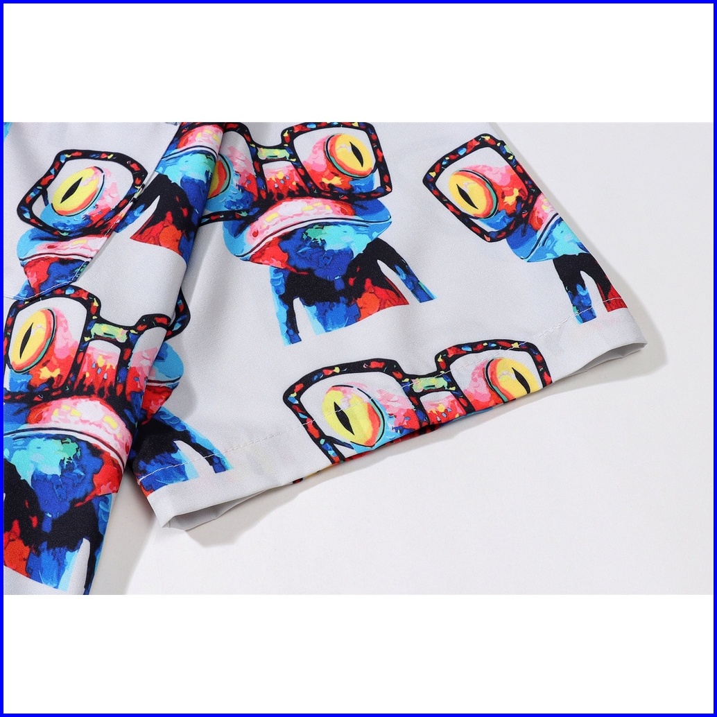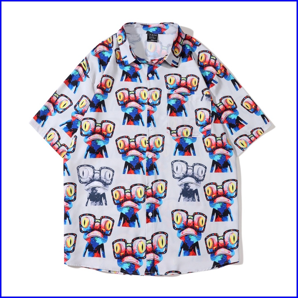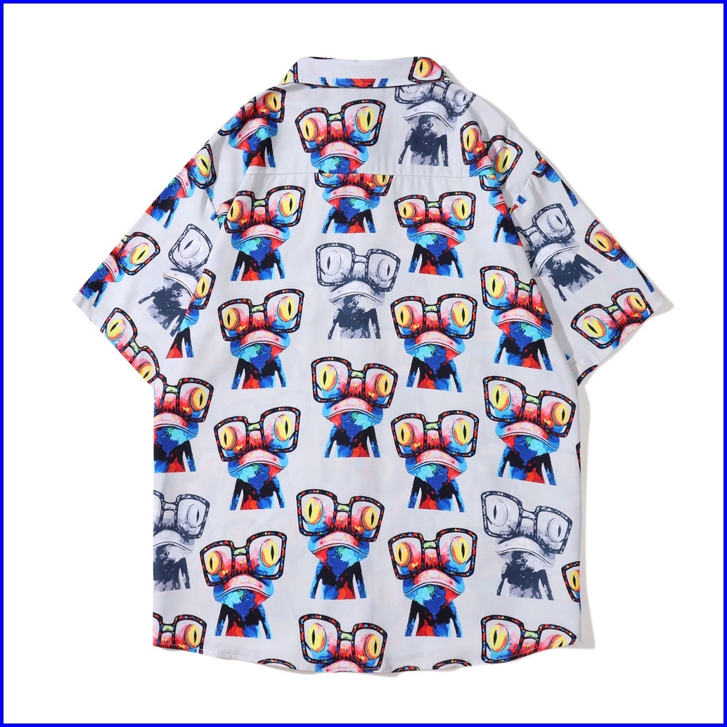 Cetakan Katak Lucu Kemeja Lengan Pendek Longgar Wanita Kemeja Pantai Fashion Jalanan Puncak Resor Bali