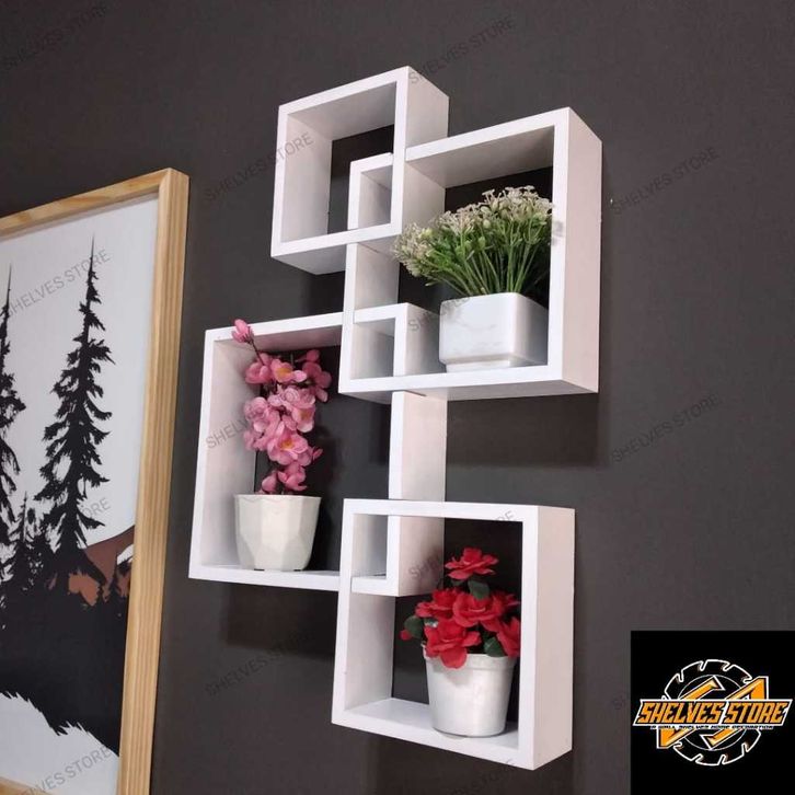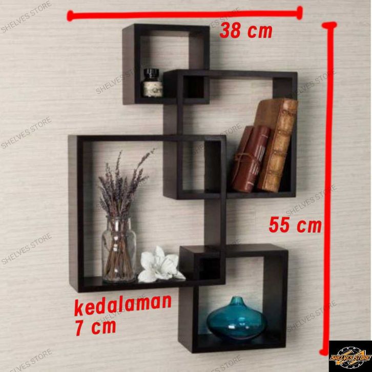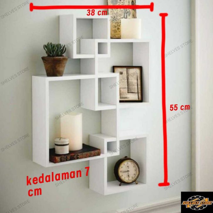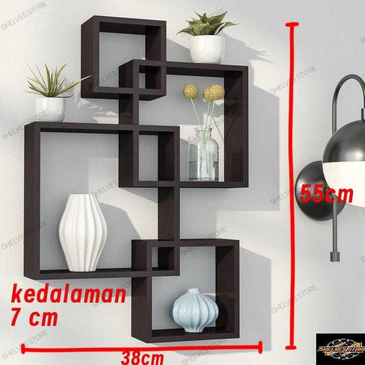 Rak dinding minimalis segi empat kotak 4 pcs 1 set ukuran medium
