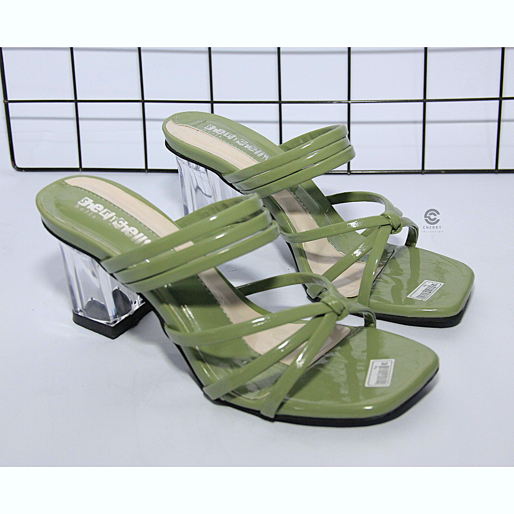 (Gratis Ongkir) SANDAL HIGH HEELS WANITA QUENSSA R-07 BLOCK HAK KACA 7 CM CHEELS