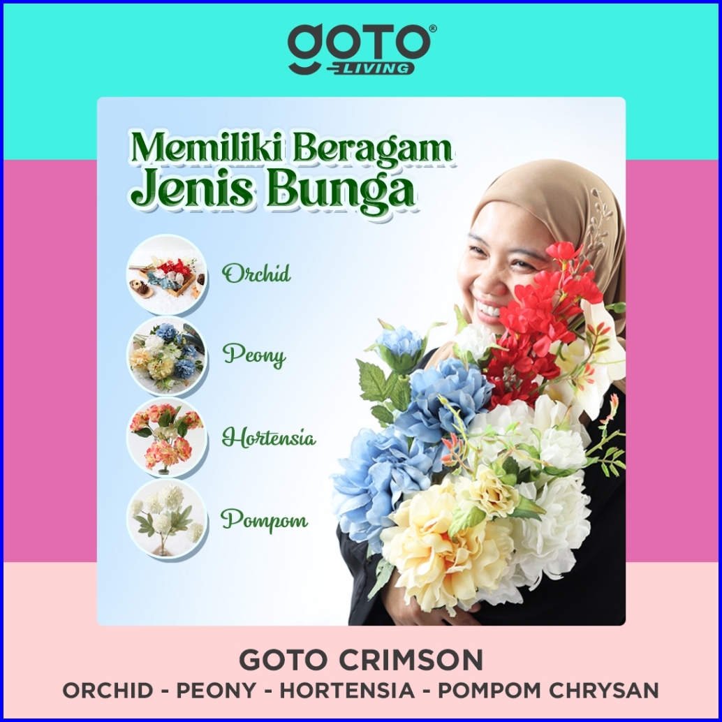 Goto Crimson Bunga Hias Mawar Teratai Artificial Flower Buket Plastik