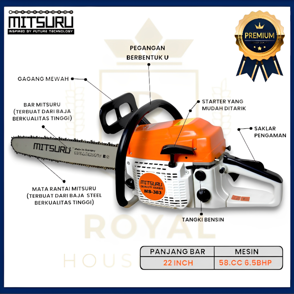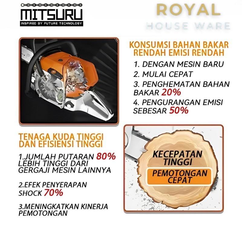 Gergaji Mesin Potong Kayu Senso Chainsaw Mesin 58CC 2T Mesin Gergaji 22 Inch Gergaji Bensin MITSURU