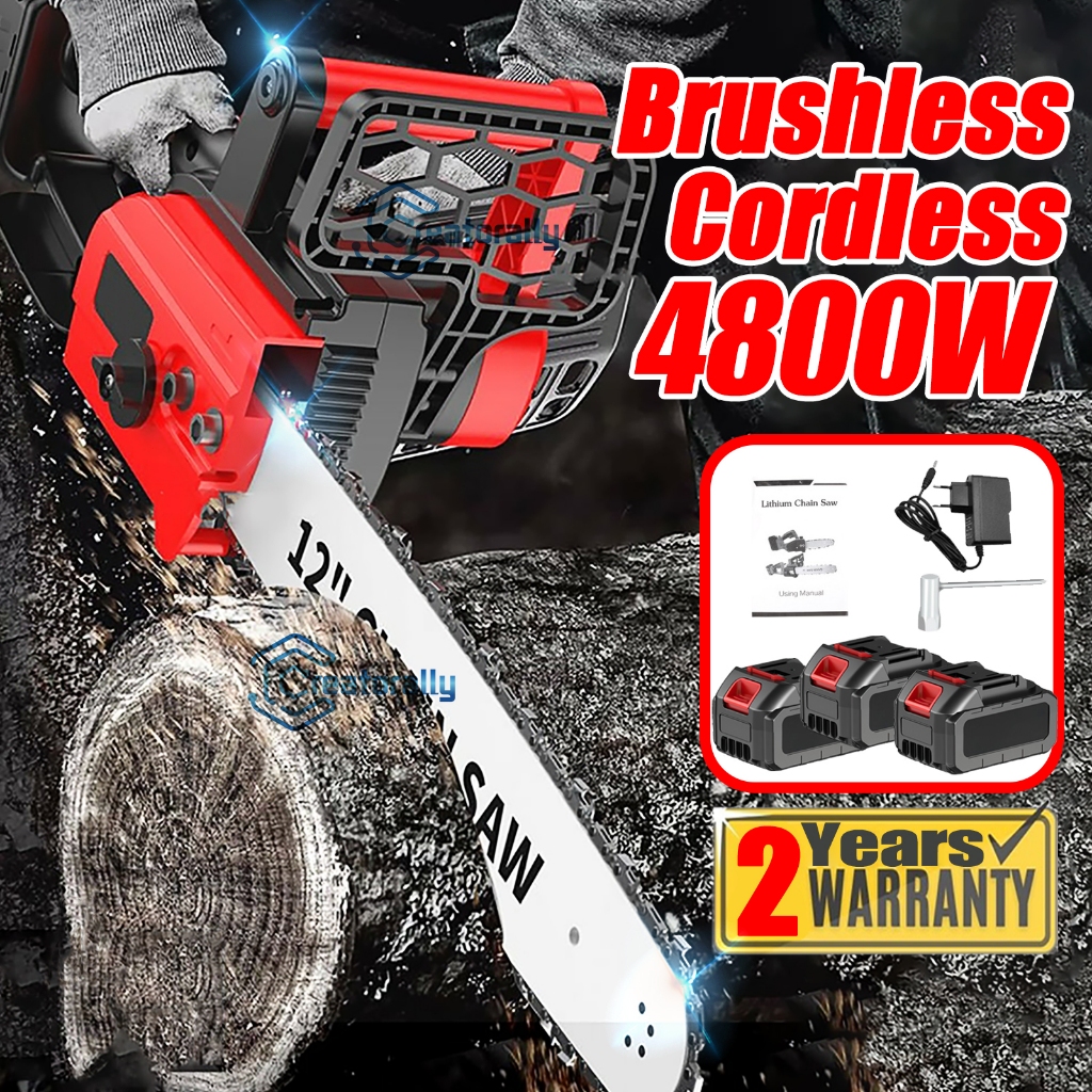 Creatorally Mesin Chainsaw Cordless Brushless Mini Listrik 12 Inch Chainsaw Baterai 4800W Portable