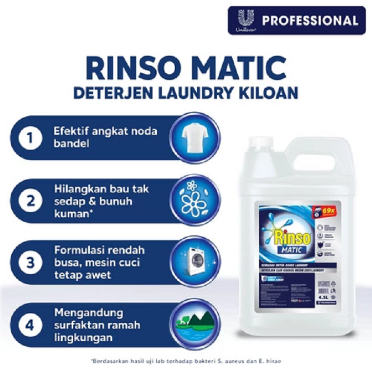 Rinso Professional Deterjen Laundry Kiloan Cair 4.5 L Jerigen Sabun Cuci Baju