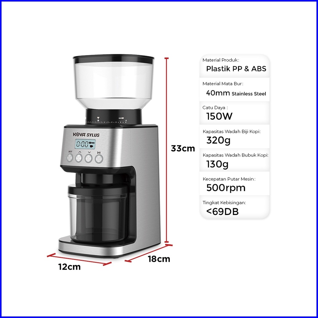 Kova Sylus Coffee Grinder Maker Digital Mesin Giling Biji Kopi Listrik