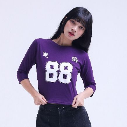Crop Top Tee Kaos Wanita Jersey Lengan 3/4 EIGHTY-EIGHT