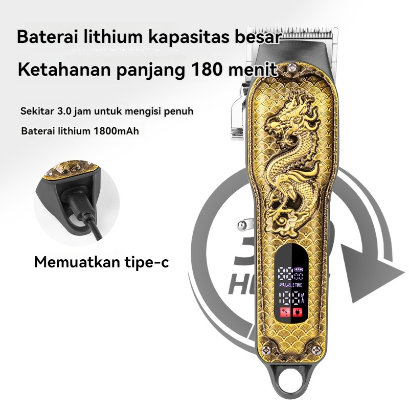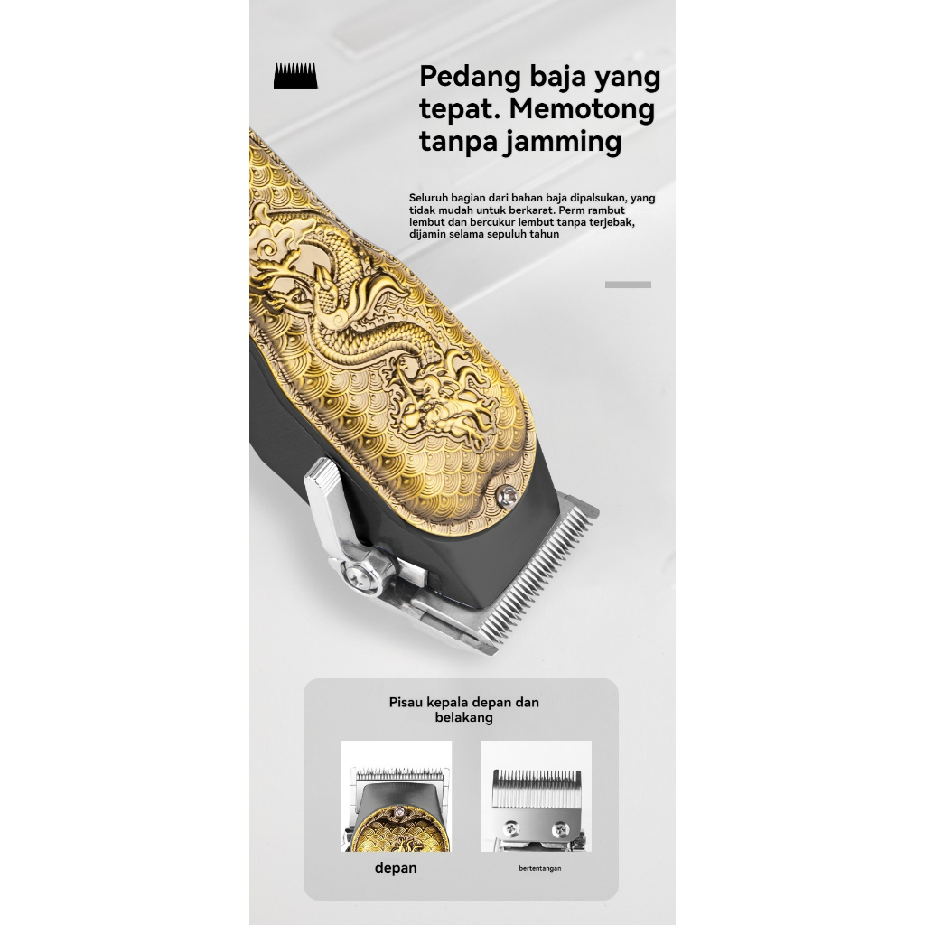 【】 Alat Cukur Rambut Elektrik Hair Clipper Alat Potong Rambut Cliper Rambut Naga Emas Cordless Professional pemotong ram