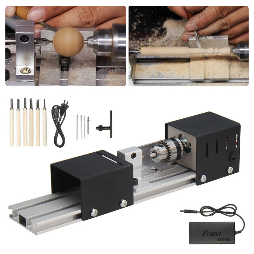 Mesin Bubut Kayu Mini Lathe Beads Grinding Polisher Woodworking DIY 960W Bahan Besi Metal