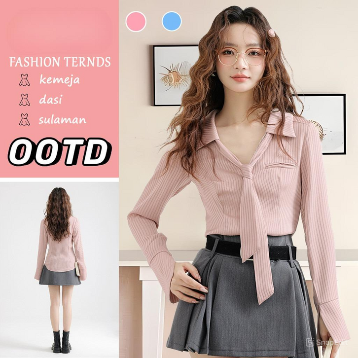 Kemeja Wanita Korean Kekinian Kemeja Sifon Bordir Estetik Terbaru Best Seller