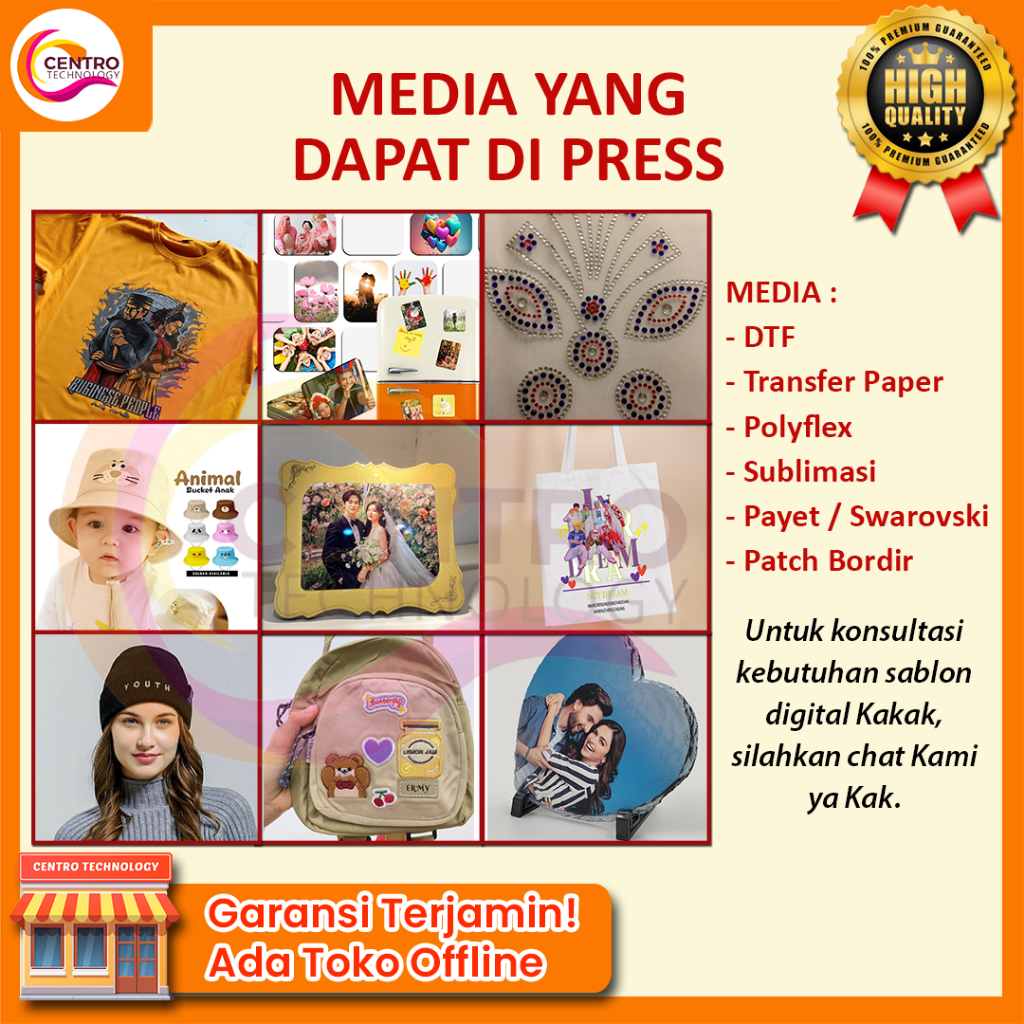 Mesin Press Sablon Kaos Digital Tipe Sliding 38 x 38 CM Daya 900 Watt | Untuk Press DTF, DTG, Sublim, Polyflex, Transfer
