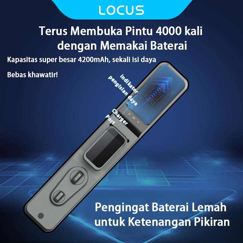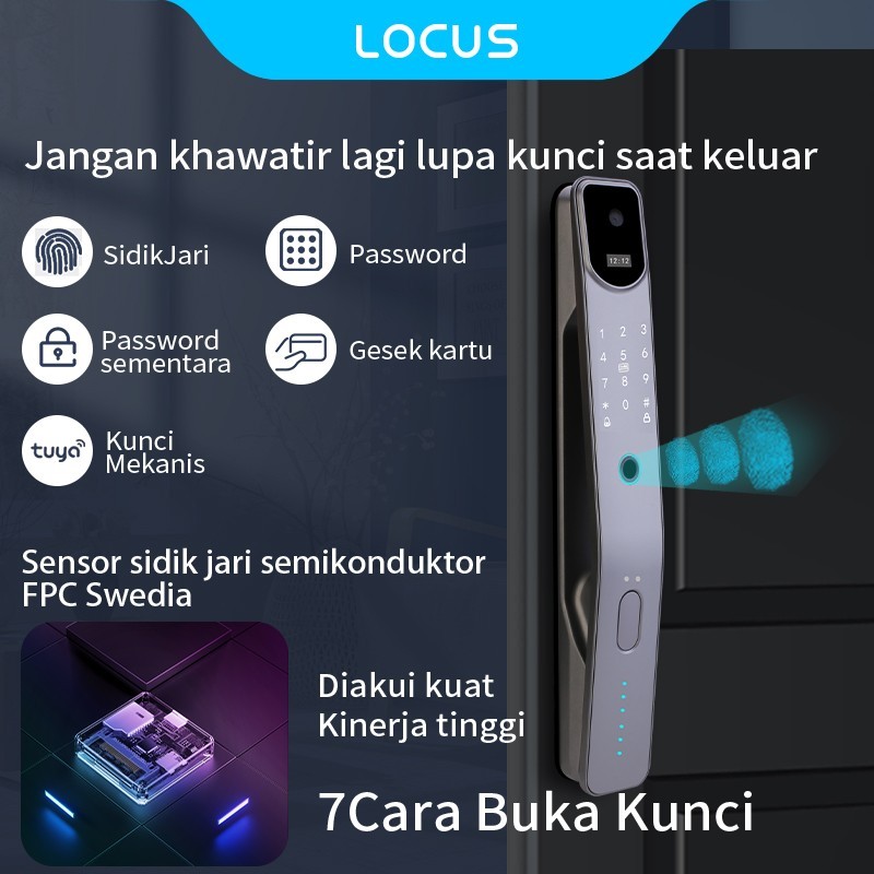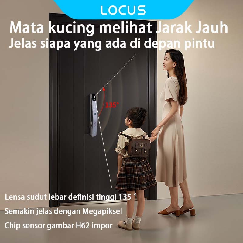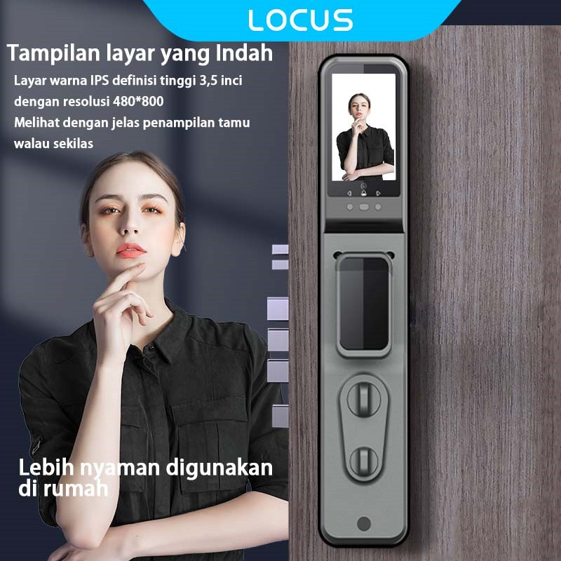 Locus V2 Video Smart Door Lock, Pemantauan Visual, Kunci Pintu Digital Peephole Cerdas, Kunci Pintu Sidik Jari dengan CC