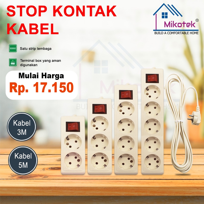 MIKOTEK STOP KONTAK KABEL 2/3/4/5 LUBANG COLOKAN LISTRIK 3M 5M