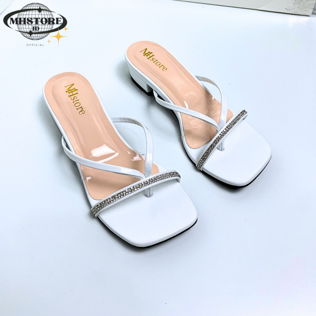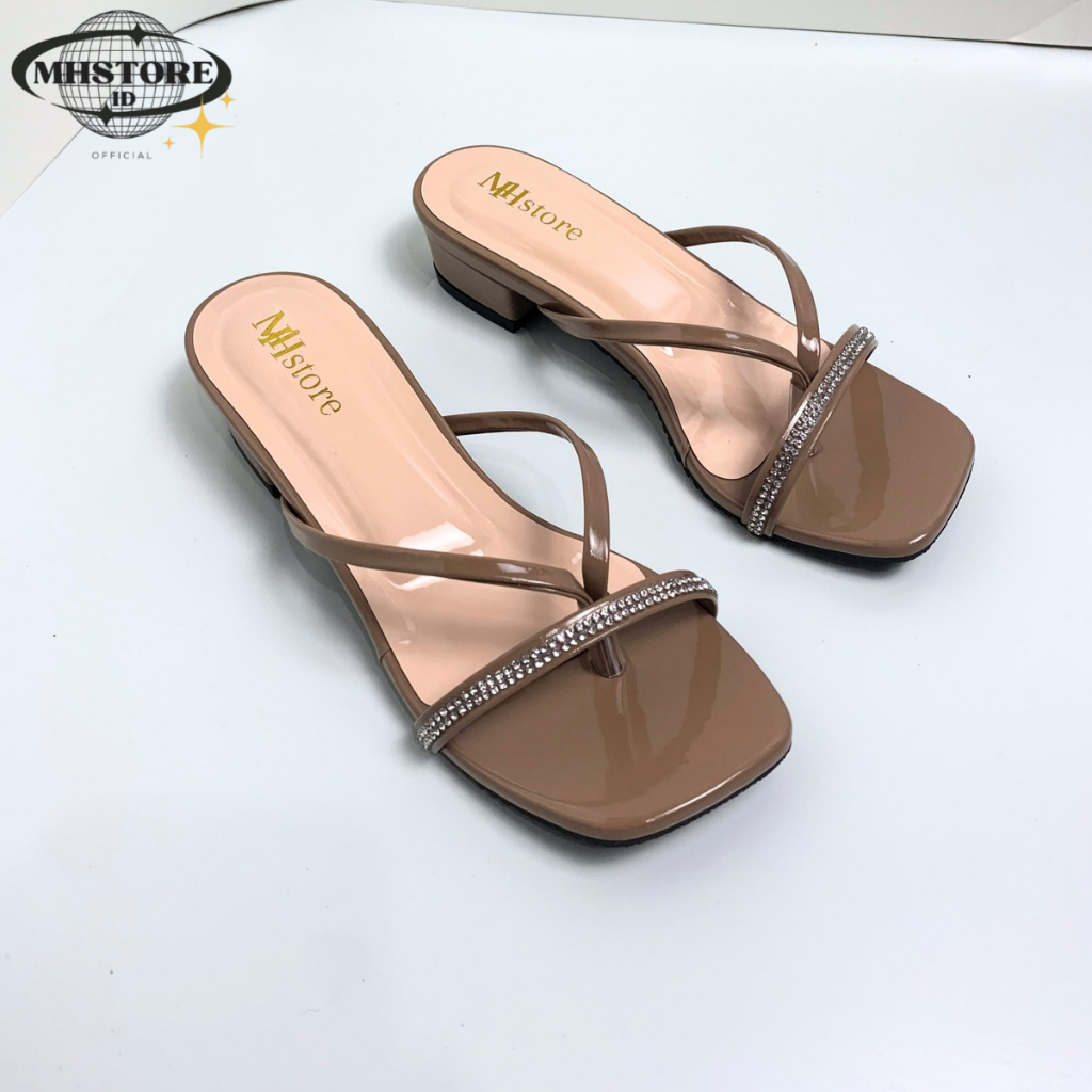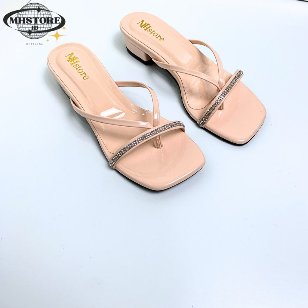 (Gratis Ongkir) Sandal Wanita Hak Tahu 3cm Jepit Jely Permata Sandal Heels Wanita Kekinian MH14 Elegan