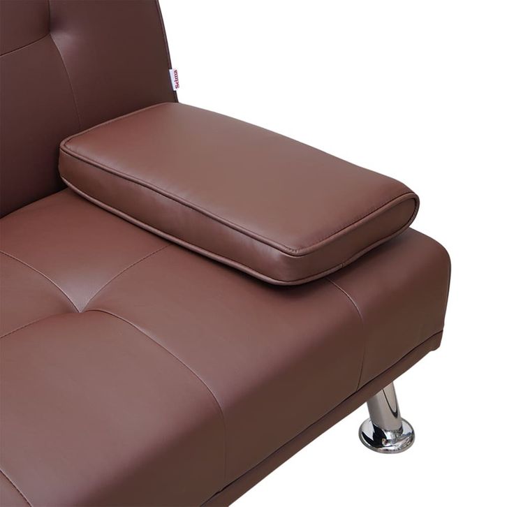 Sofa Bed Kulit Dengan Console A5 - Cokelat Tempat Duduk Multifungsi Sofa Tidur 2In1 Kursi Santai Serbaguna