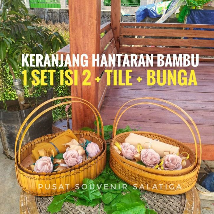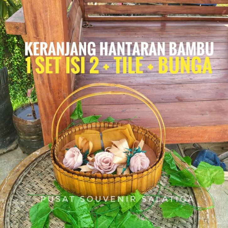 keranjang hantaran bambu 1 set isi 2 + tile + bunga