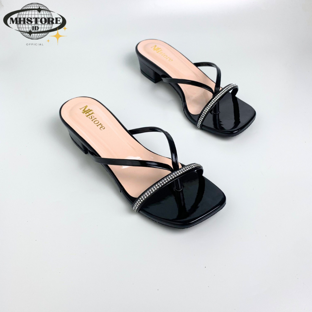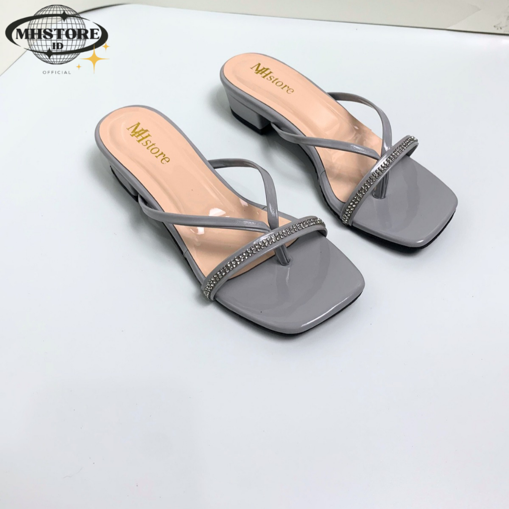 (Gratis Ongkir) Sandal Wanita Hak Tahu 3cm Jepit Jely Permata Sandal Heels Wanita Kekinian MH14 Elegan