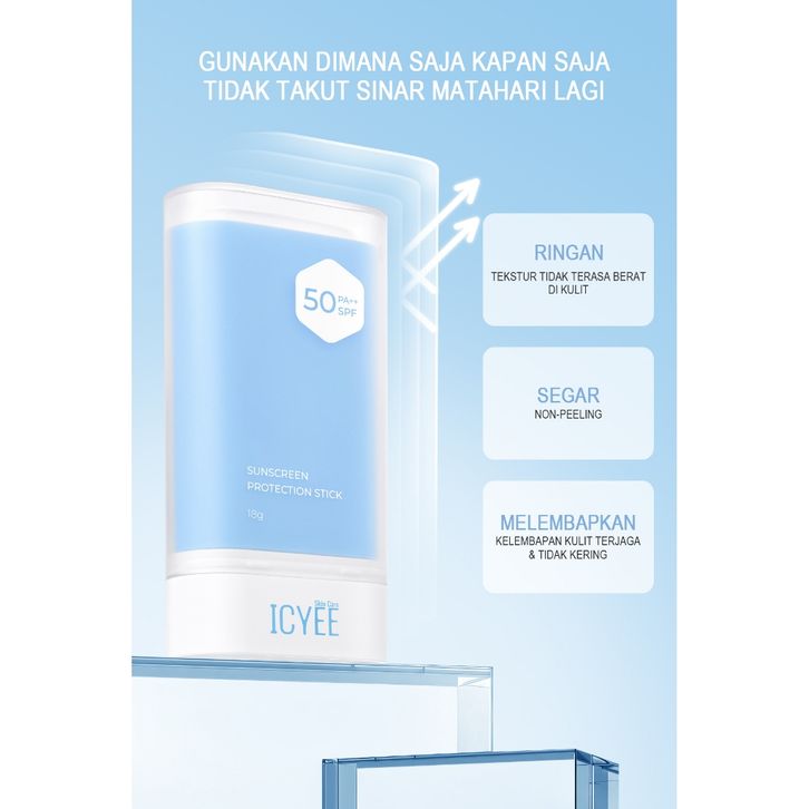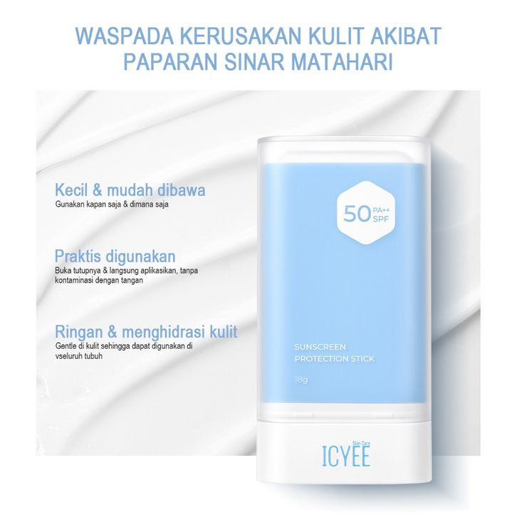 ICYEE Sunscreen Protection Stick SPF50 PA++ 18g | Easy Application & Lightweight | Sunscreen Melembabkan Hidrasi Anti-S