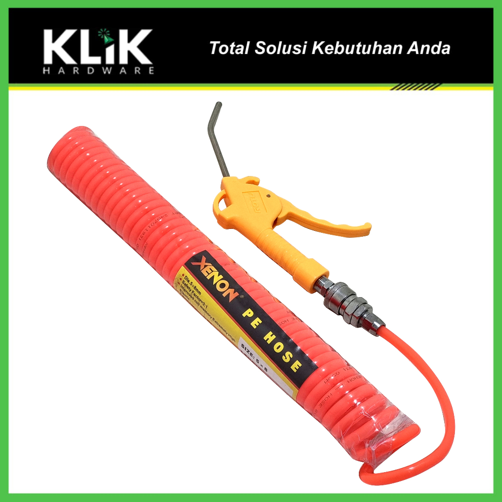 PAKET Selang Recoil Spiral Angin Kompresor 4 6 9 12 Meter + Air Blow Gun Air Duster