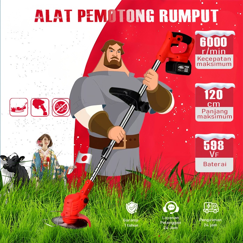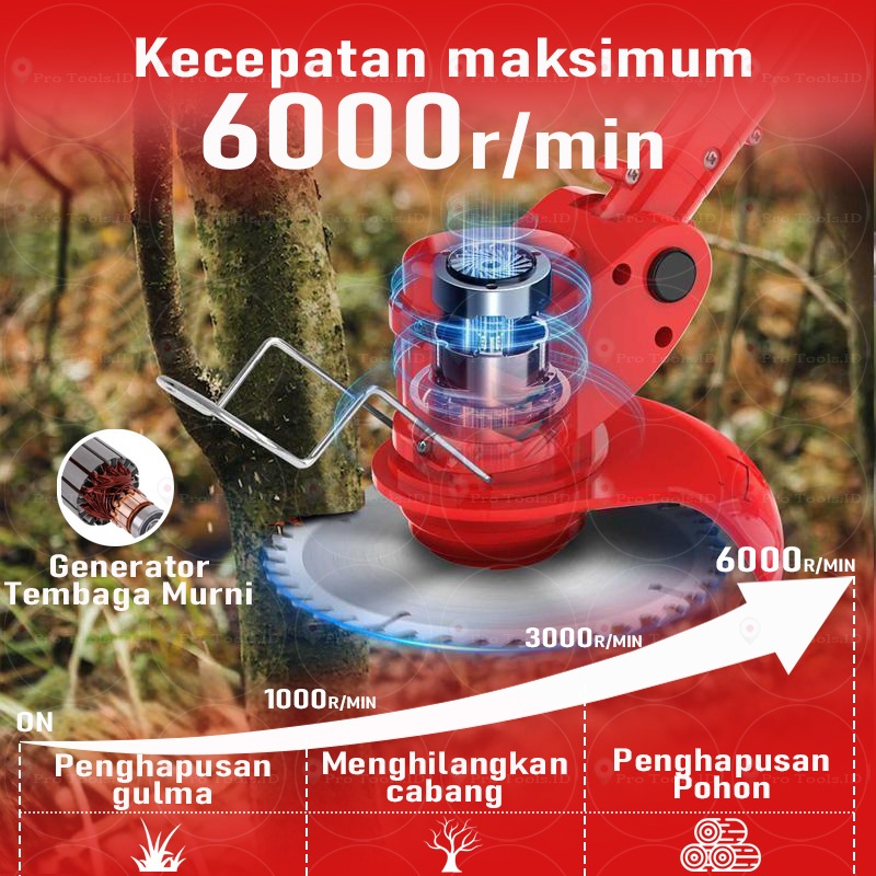 6000r/min mesin potong rumput baterai alat pemotong rumput pemotong rumput elektrik dengan Baterai Li-ion