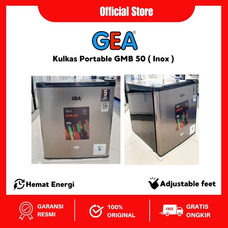GEA Kulkas Portable Mini 48L Mini Bar GMB-50 Stainless Steel Door