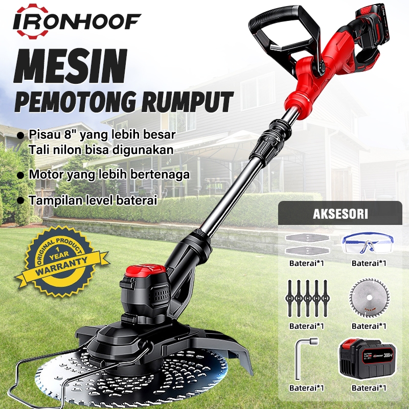 IRONHOOF 588V Mesin Potong Rumput 88V Pemotong Rumput Listrik Pemangkas Rumput dengan Baterai Li-ion