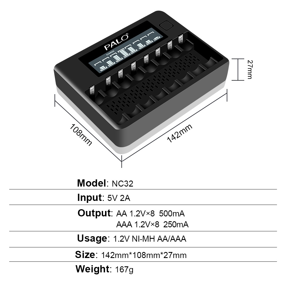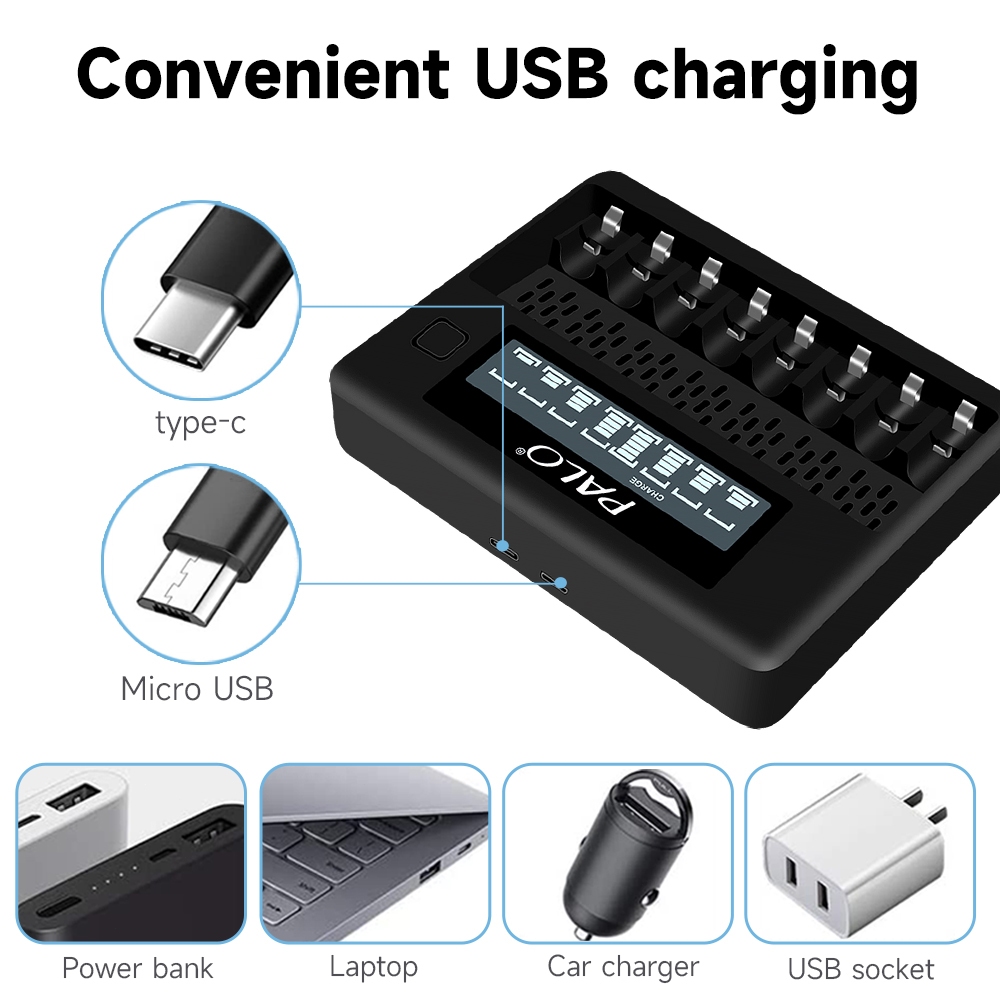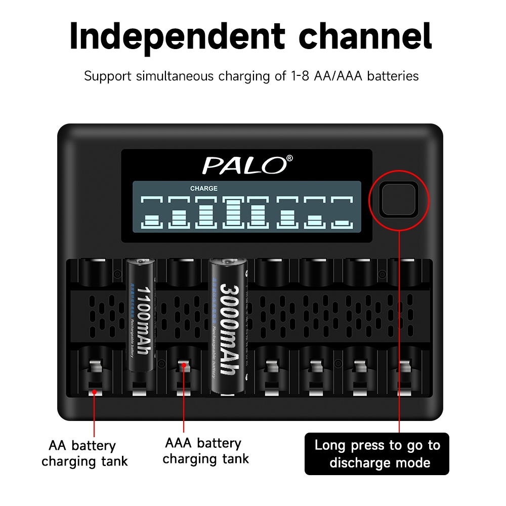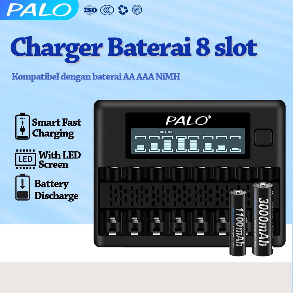 PALO 8 Slot Charger Baterai 1.2V AA AAA Ni-MH Rechargeable Battery Charger