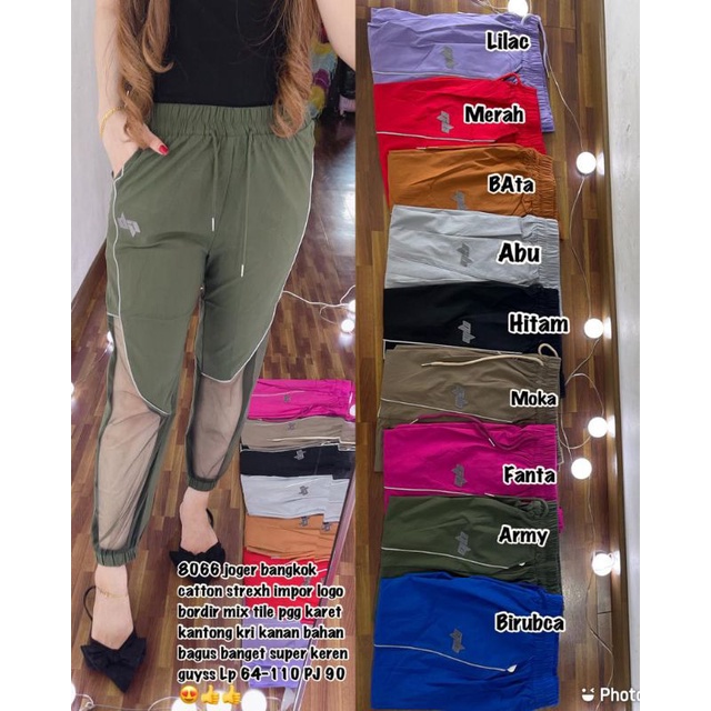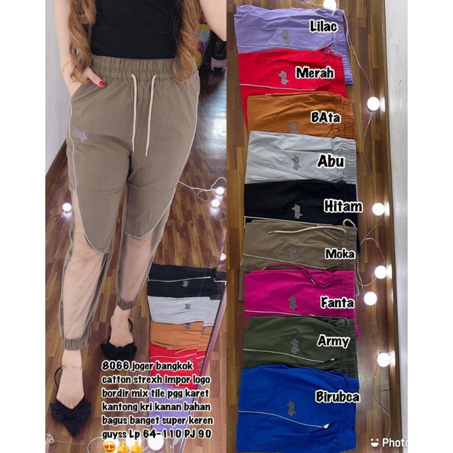 JOGER VIRAL 8066 CELANA JOGER BANGKOK IMPORT KATUN STRET IMPORT LOGO BORDIR MIX TILE