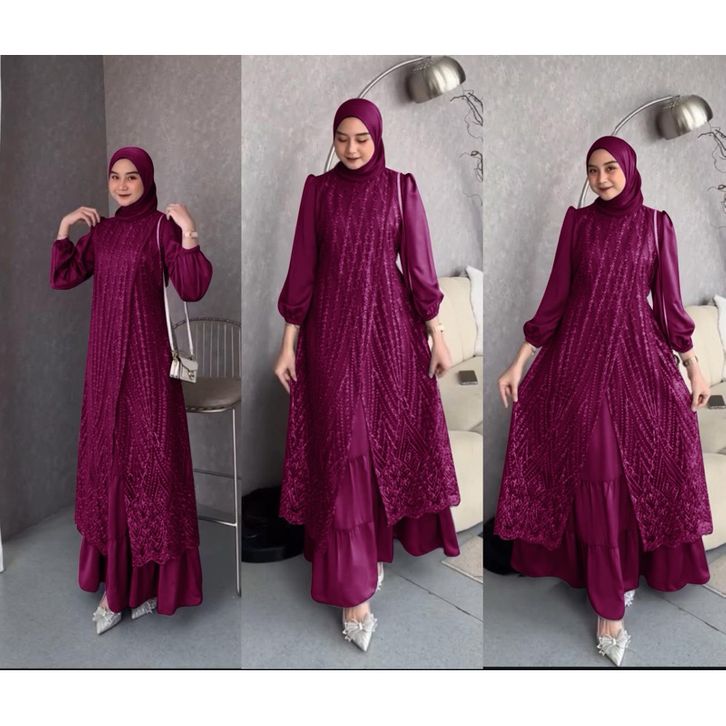 MAXI OLIVIA (M L XL XXL XXXL) GAMIS BRUKAT GAMIS TERLARIS GAMIS PESTA GAMIS KONDAGAN GAMIS SERAGAM BRIDESMAID GAMIS KEKI