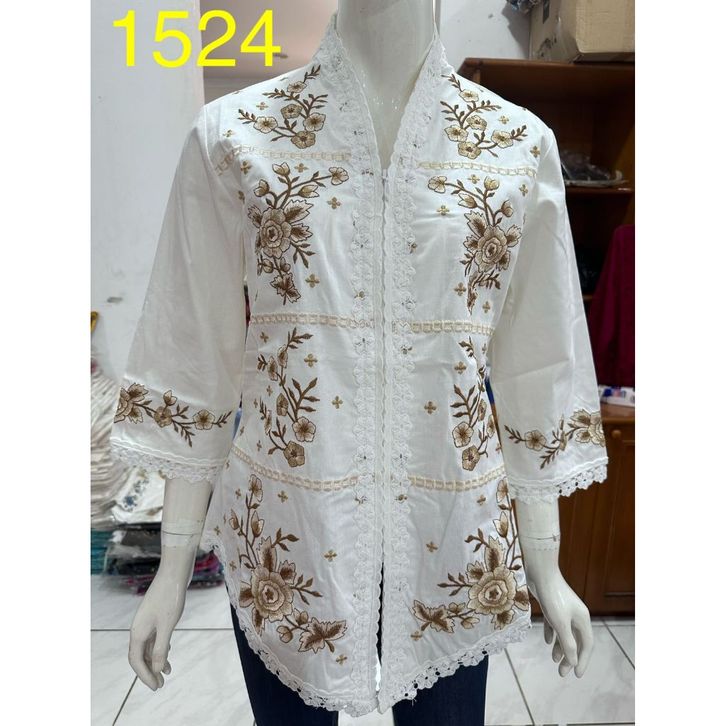 1526 Kebaya Bordir Timbul Kombinasi Brukat Premium Alexuez