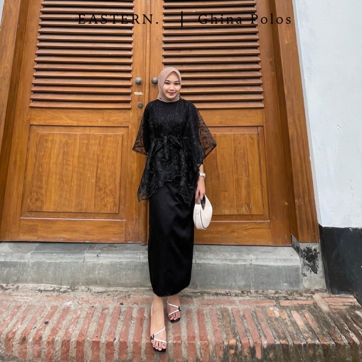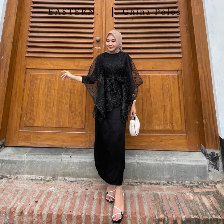 [PAKET 5IN1] Baju OneSet Kondangan Kekinian Kebaya Modern GHINA Outer Brukat Rok Lilit Satin Wisuda