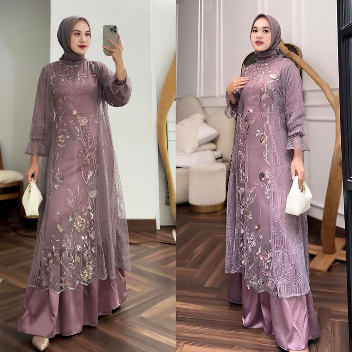Gamis Brokat Burgundy Remaja Gamis Kondangan Kekinian Dress Pesta Mewah Wanita Gamis Lebaran 2025