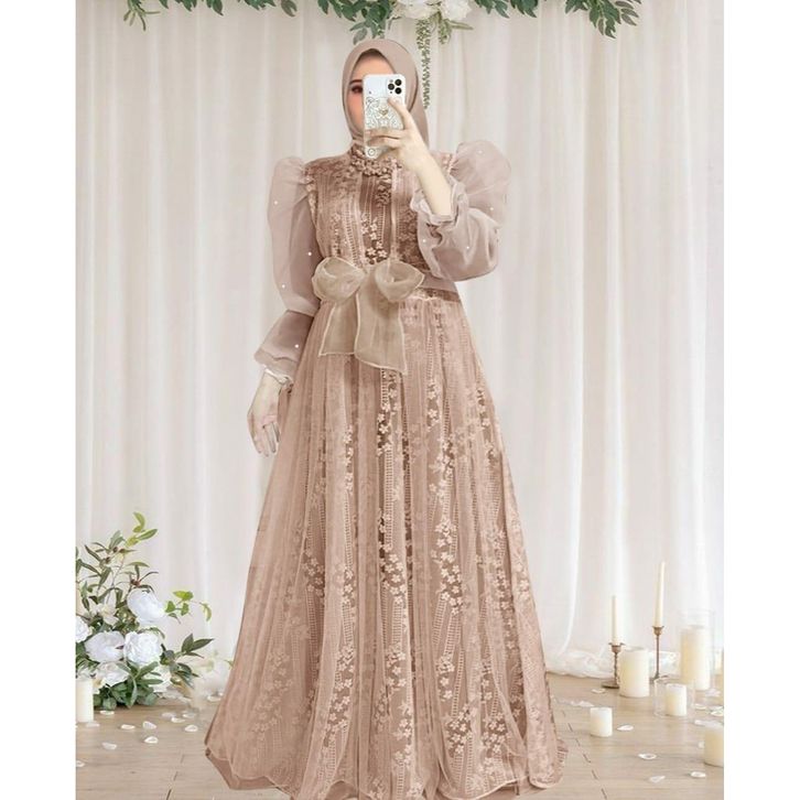Dress Alysa Brukat M L Dress Brukat Terbaru Dress Kondangan Wanita Dress Muslimah Kekinian Fashion Muslim Wanita