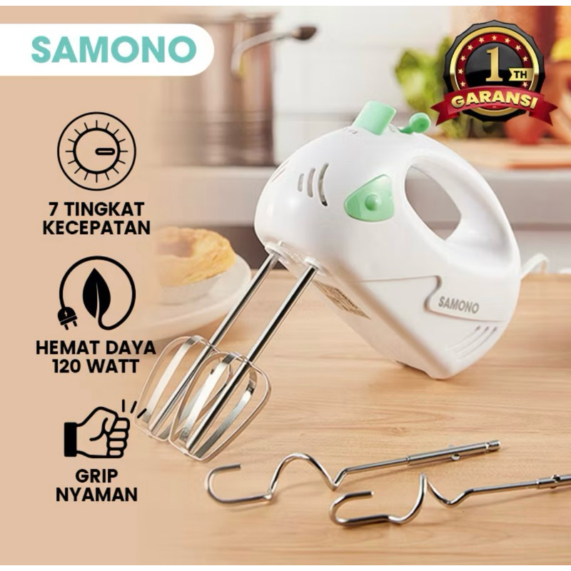SAMONO Mixer Kue 5 Kecepatan 200 Watt Free Dudukan Penyimpanan Garansi 1 Tahun Ganti Baru SW-THMB200