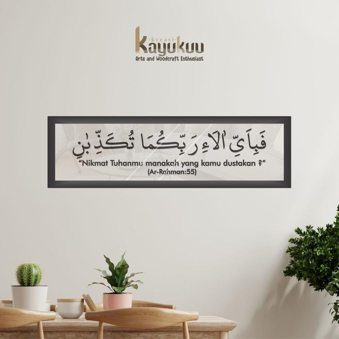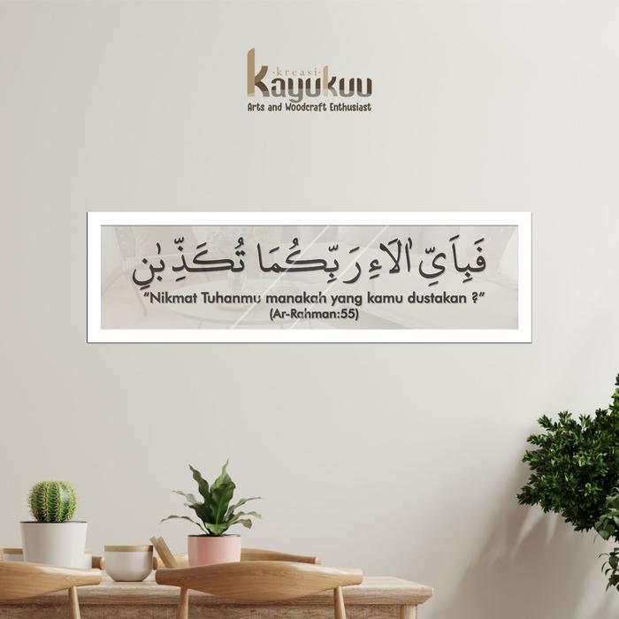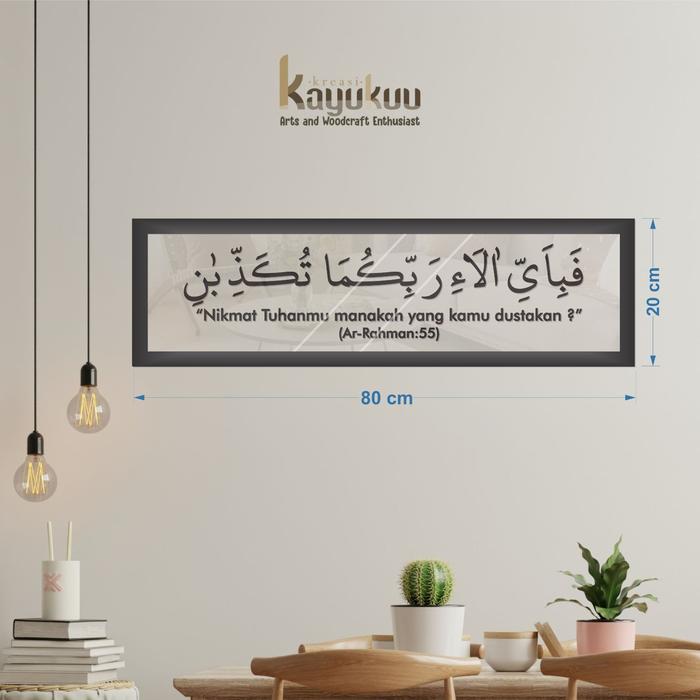 Kreasikayukuu Kaligrafi Hiasan Walldecor "QS AR RAHMAN : 55" Bahan Akrilik + Stiker + Frame [80x20] Acrylic Dinding