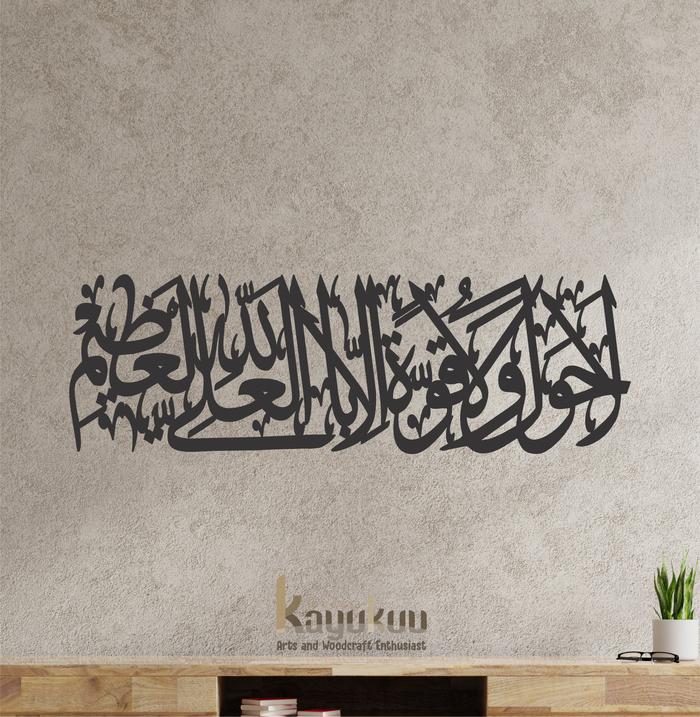Hiasan Dinding Kaligrafi Kayu Kalimat Dzikir "La Haula Wala Quwwata Illa Billah' ilaliyil adzim "Plywood 5mm