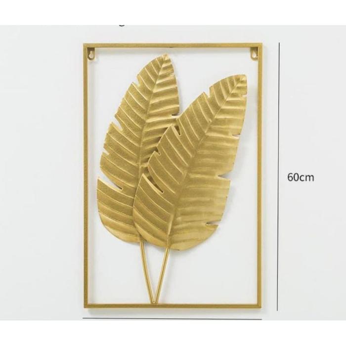 Walldecor Berkah Hiasan Dinding 60x40 Frame Metal Gold Wall Decor Nordic Daun Bunga Leaf Gingko