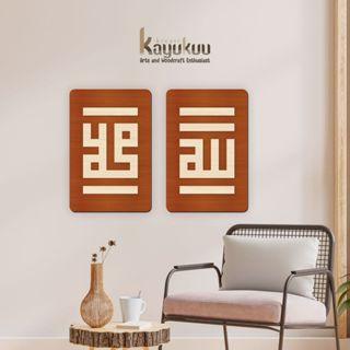 Kreasikayukuu Kaligrafi Tauhid Kufi + Latin Cutting Kayu Timbul Kalimat Tauhid Islamic Decoration plywood Coklat kayu