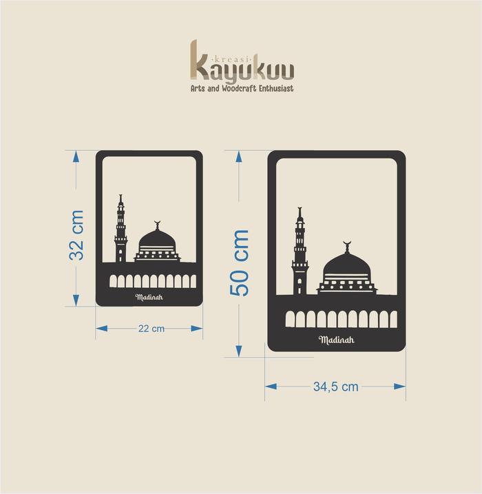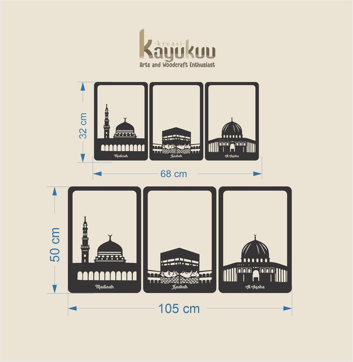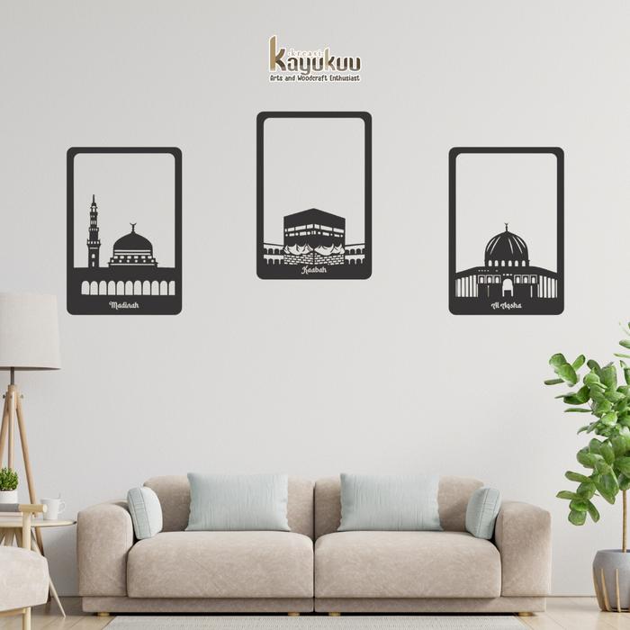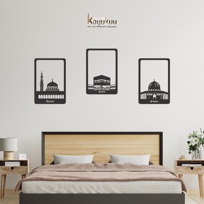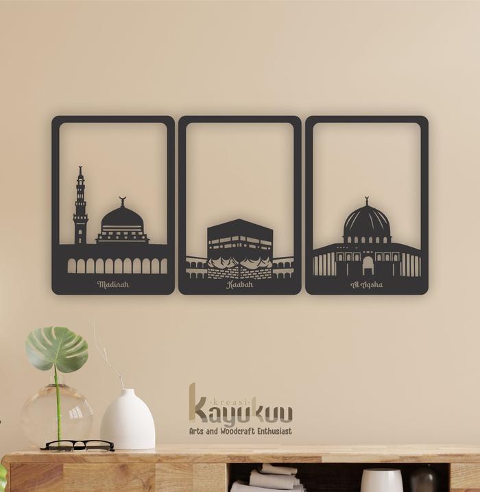Dekorasi Dinding Walldecor "Paket Madinah, Kaabah dan Al Aqsha" Bahan Cutting Laser Plywood 5mm Pink / Gold / Hitam