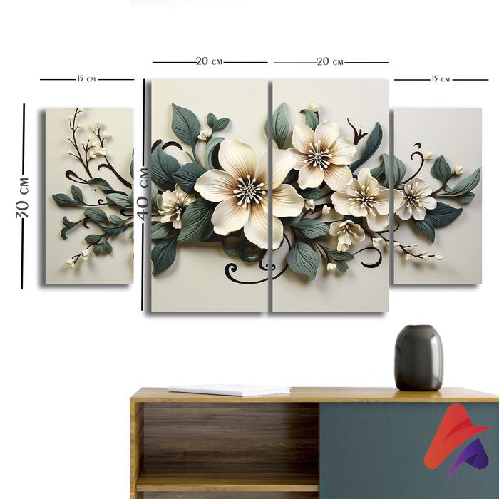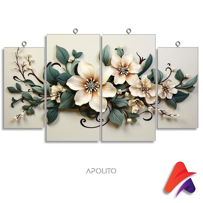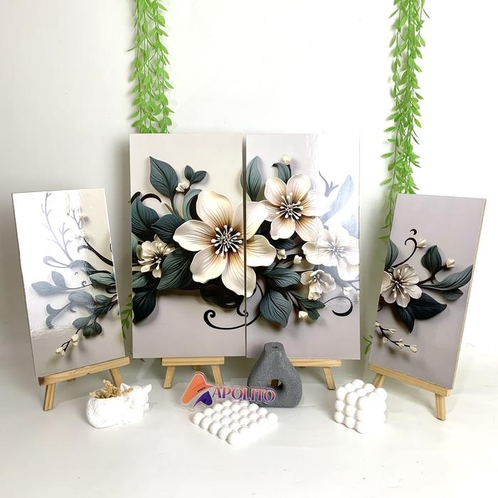 HIASAN DINDING SET BUNGA 3D TEMA WHITE AND GREEN ORNAMEN FLORAL AESTHETIC ISI 4 SATU SET ESTETIK POSTER JUMBO FLORA