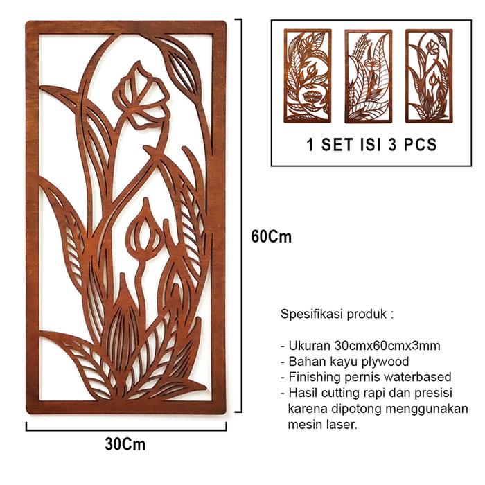 Hiasan dinding kayu motif daun walldecor hiasan ruang tamu CTKAA03