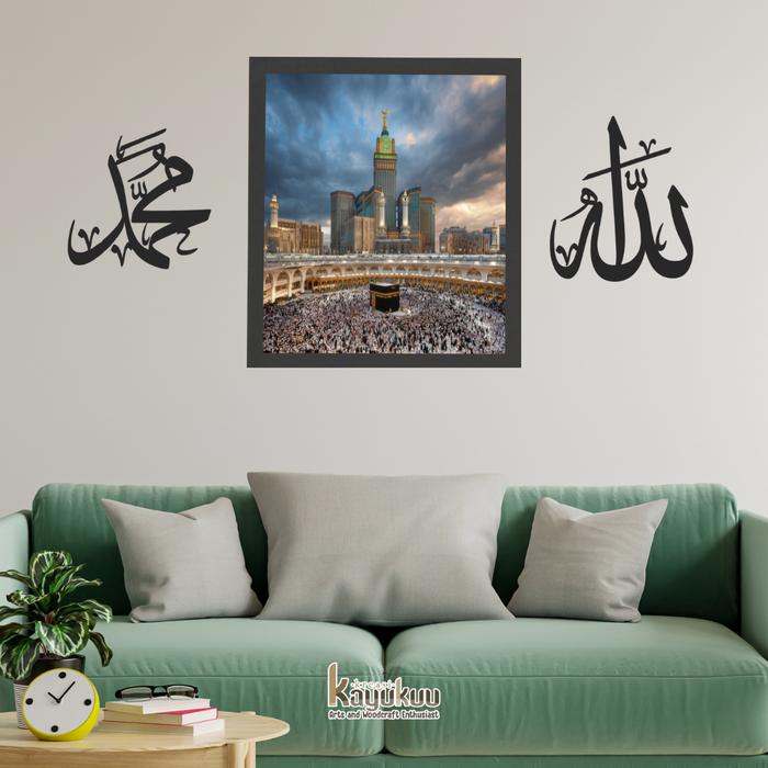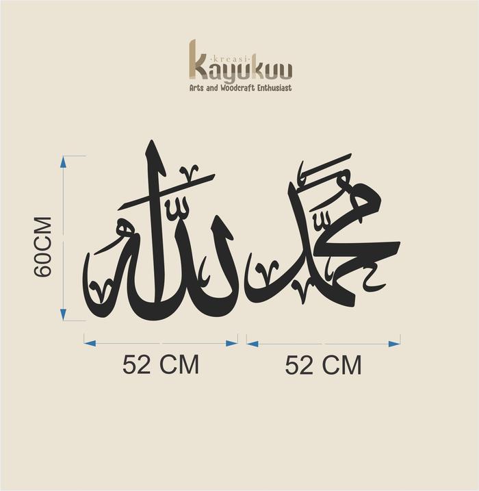 Hiasan Dinding Kaligrafi Lafadz Allah Muhammad T60cm Bahan Cutting Plywood 5mm