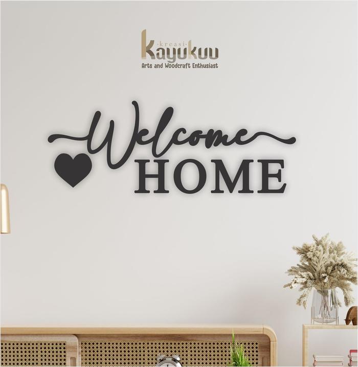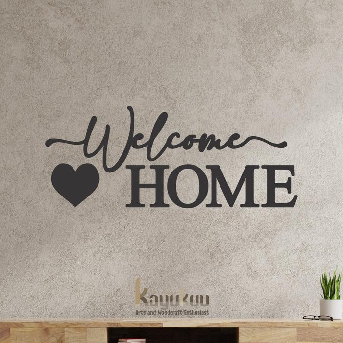 Hiasan Dinding Tulisan Cutting "Welcome Home 70cm" Bahan Plywood 5mm warna