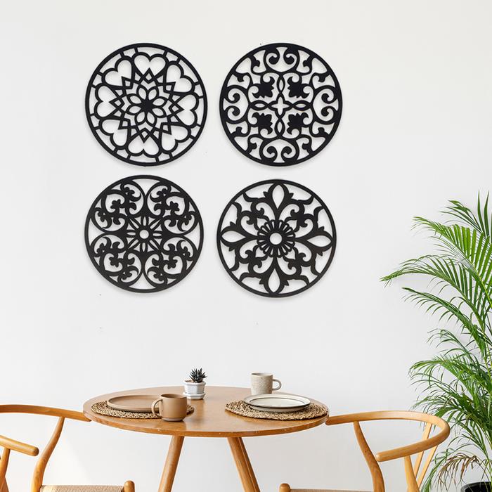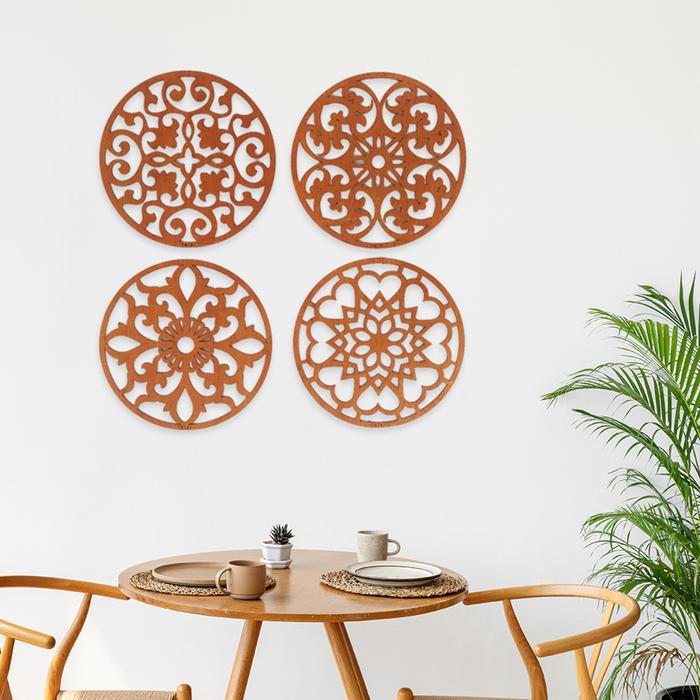 Hiasan dinding kayu aesthetic bulat 1set isi 4pcslldecor ruang tamu / hiasan dinding teras CTKCC02