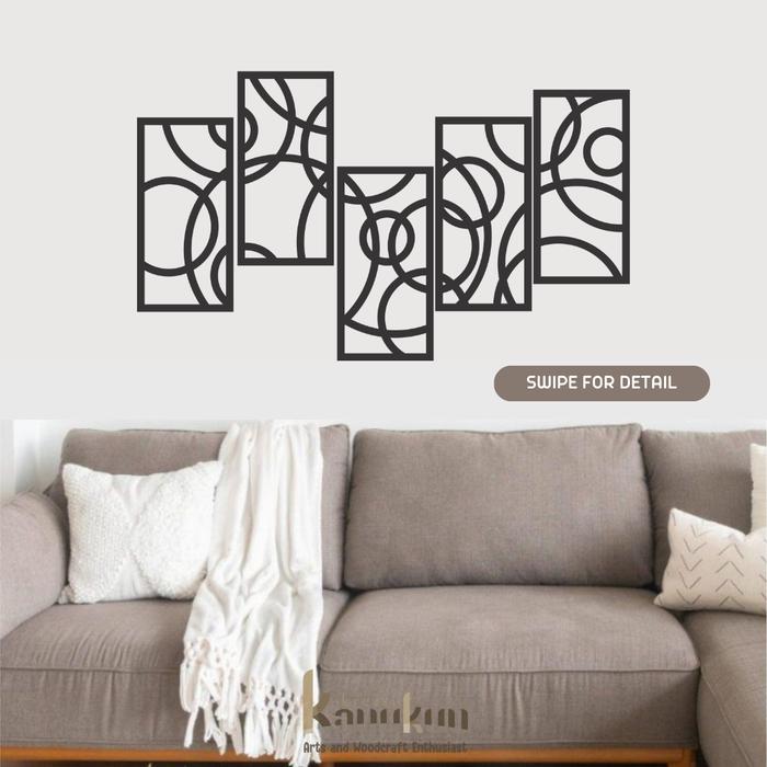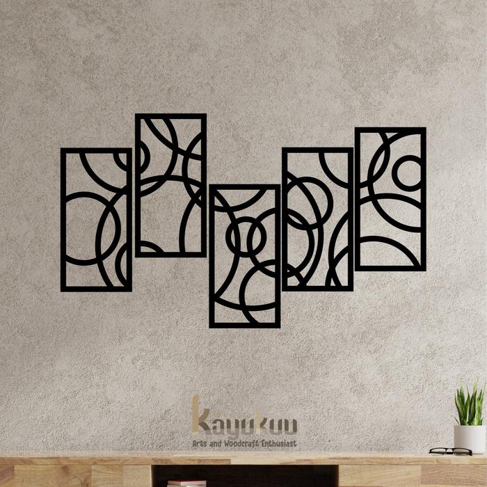 Paket Dekorasi dinding Tema Lingkaran 5pcs Bahan Cutting Kayu Plywood 3mm